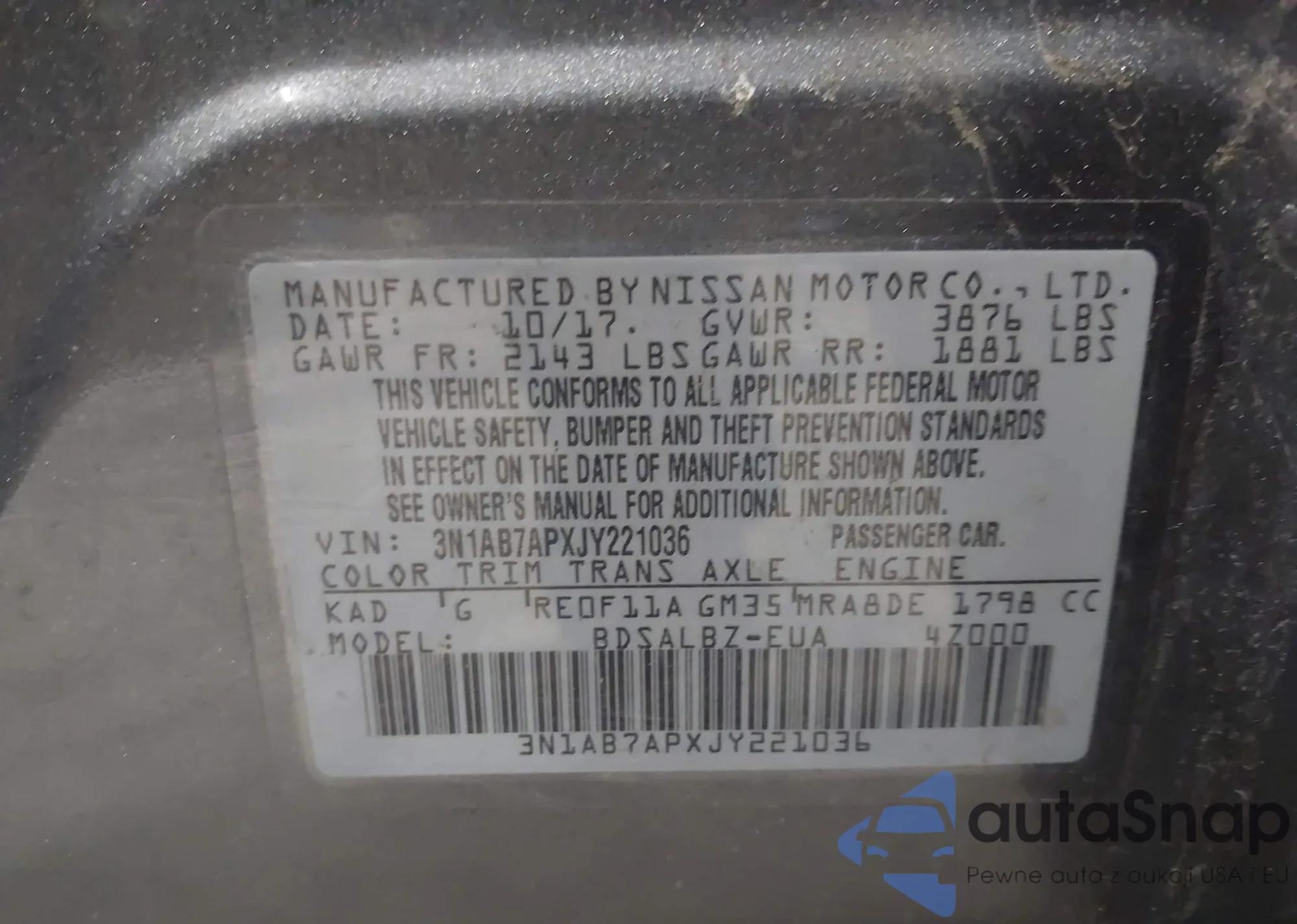 • VIN 3N1AB7APXJY221036