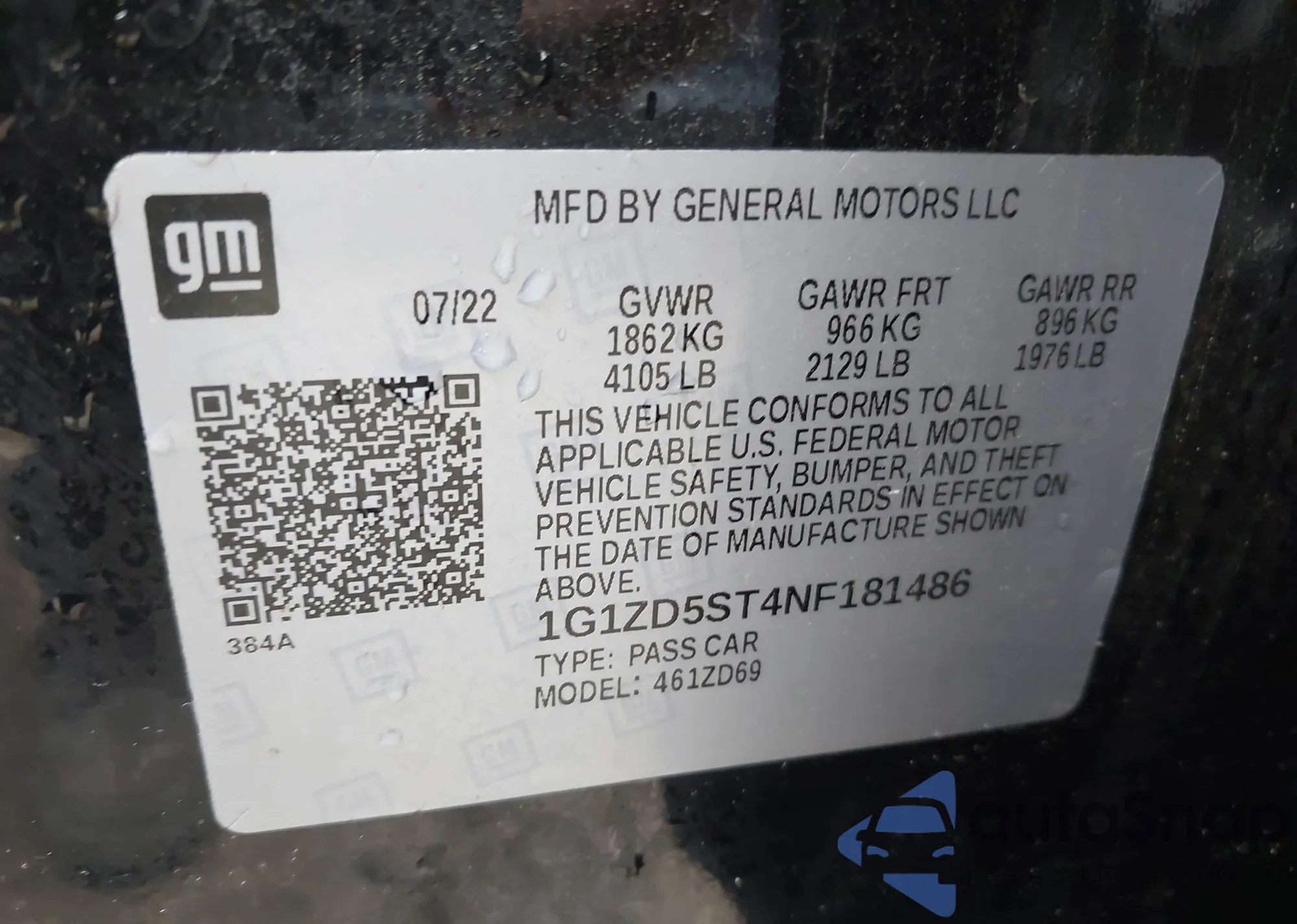 LOT: 43329897 VIN: 1G1ZD5ST4NF181486