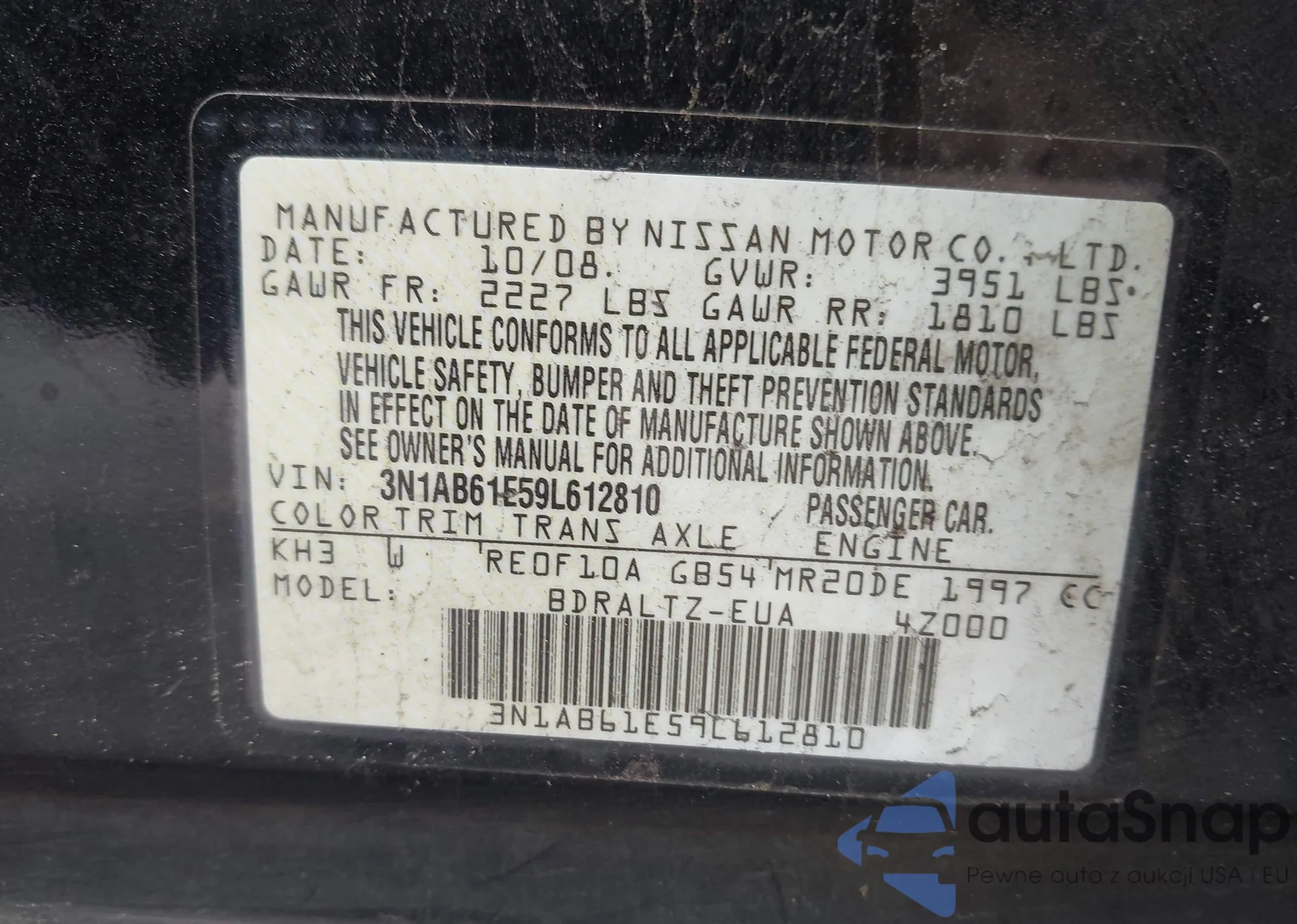 • VIN 3N1AB61E59L612810