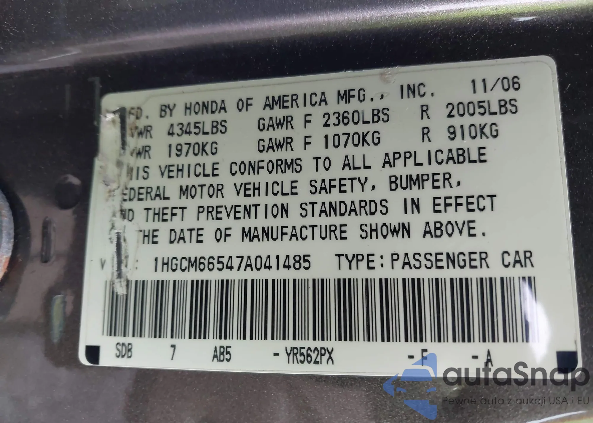 LOT: 43839505 VIN: 1GNMCAE36AR239770