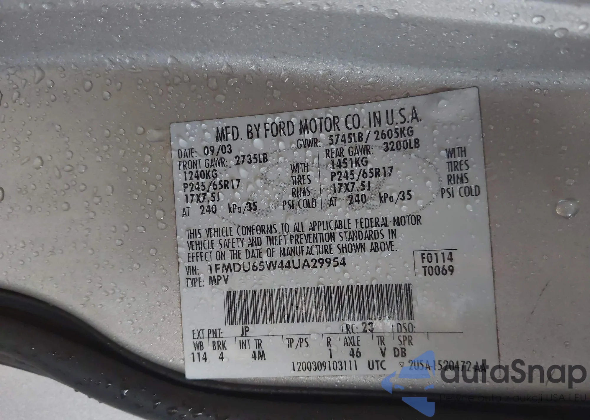 • VIN 1FMDU65W44UA29954