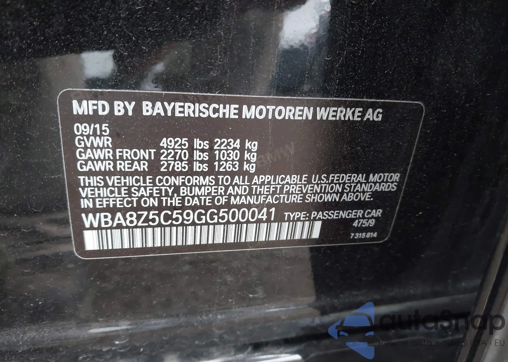 LOT: 43780111 VIN: WDDWJ4KB9HF416107