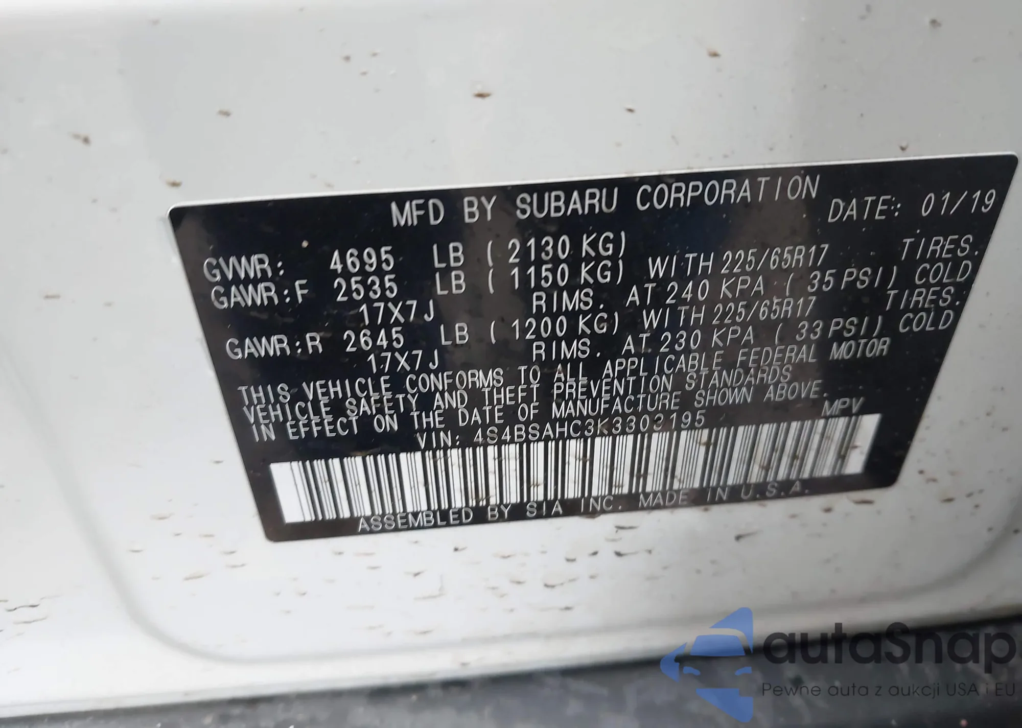 LOT: 43801519 VIN: JF2SKAJC5PH543696
