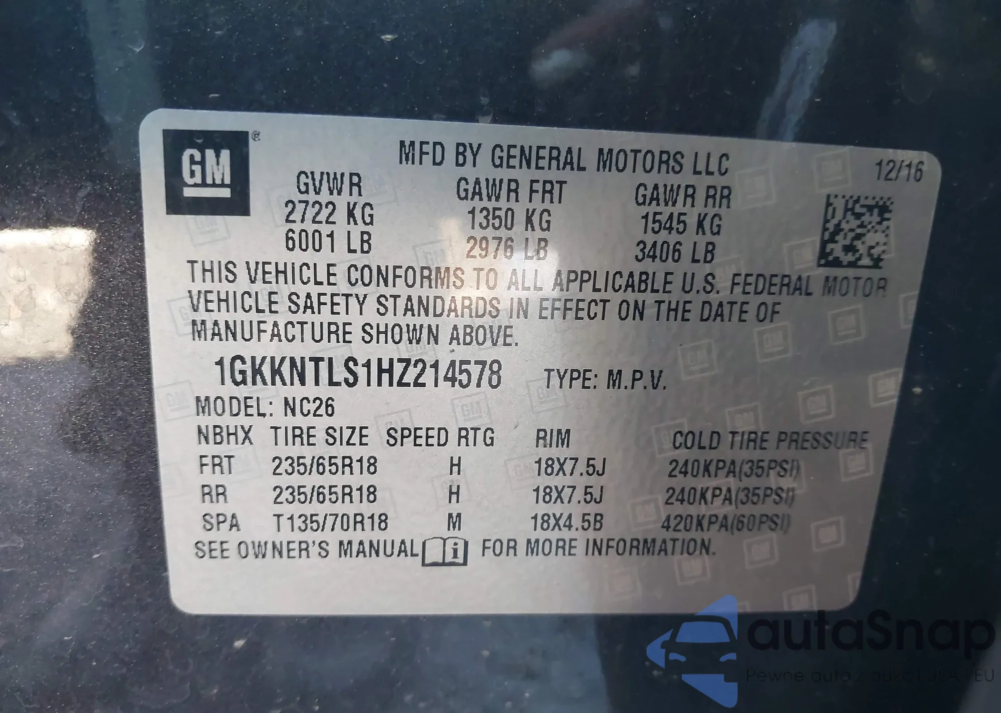 LOT: 43750311 VIN: 1GKKNTLS1HZ214578