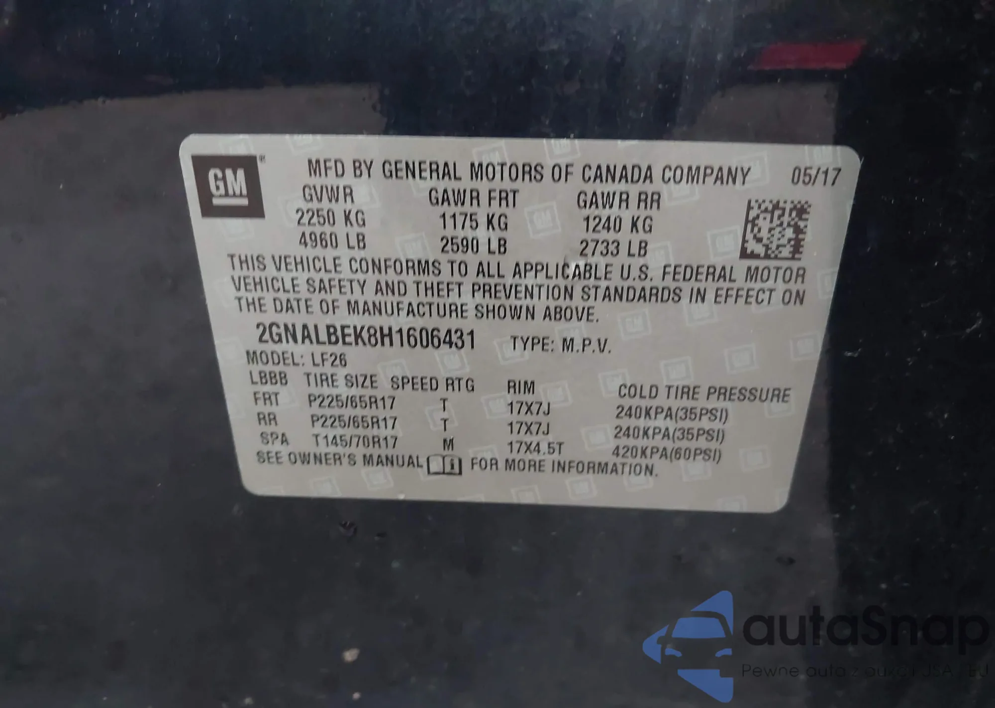 • VIN 2GNALBEK8H1606431