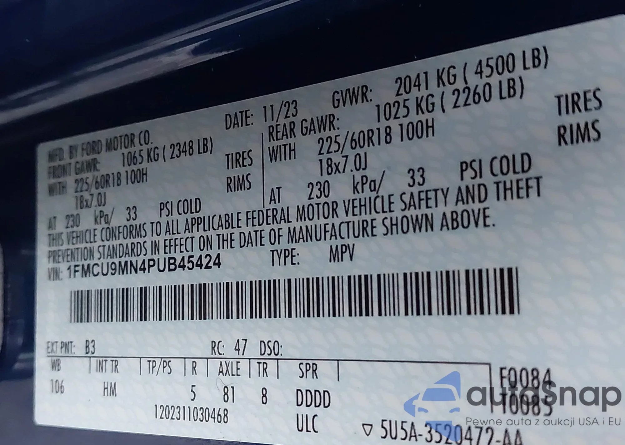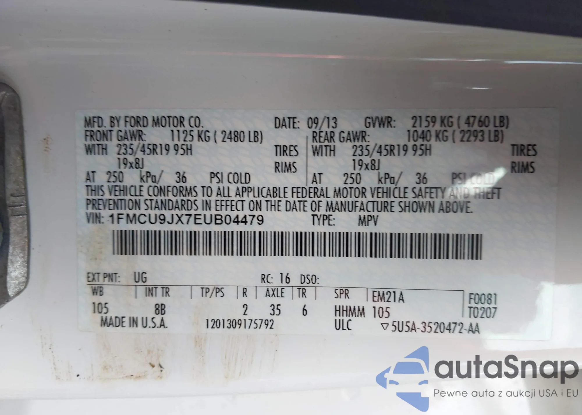 • VIN 1FMCU9JX7EUB04479