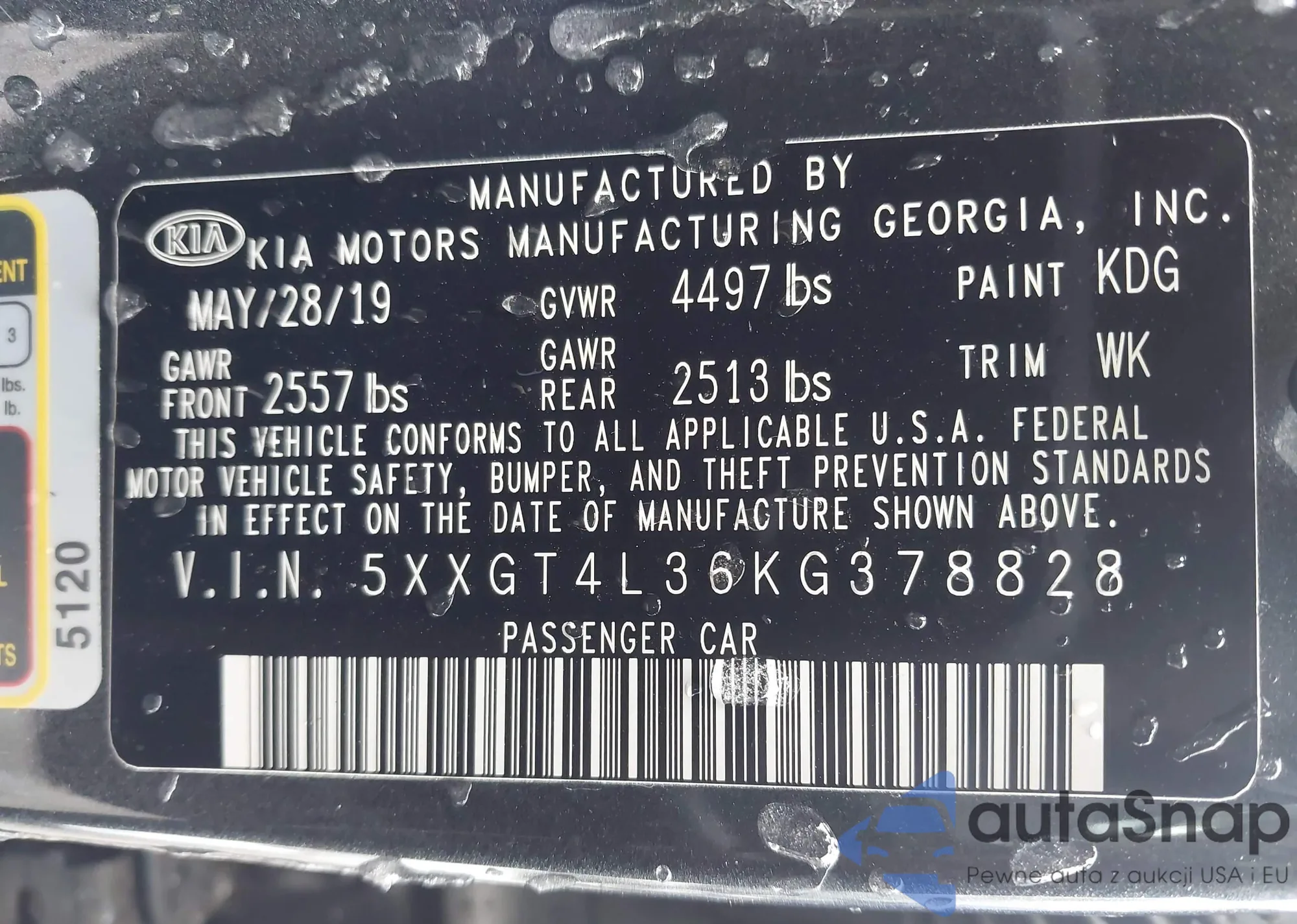 • VIN 5XXGT4L36KG378828