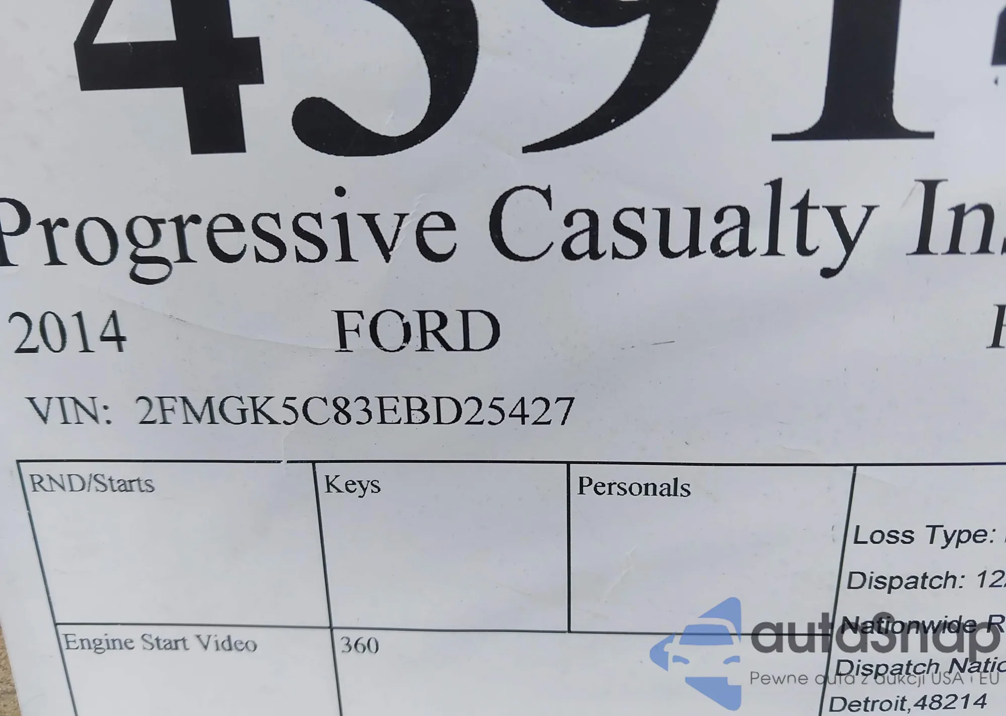 LOT: 43914793 VIN: 2FMGK5C83EBD25427