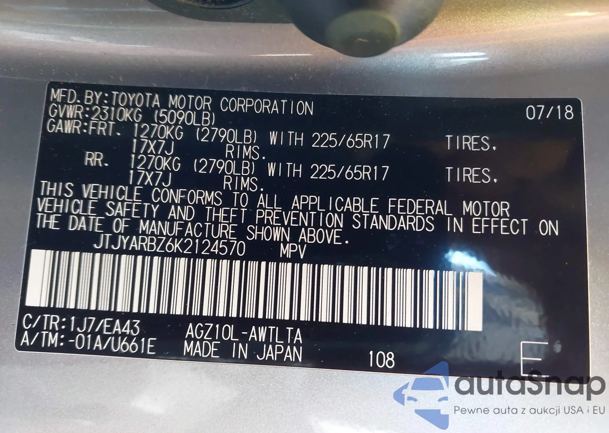 • VIN JTJYARBZ6K2124570