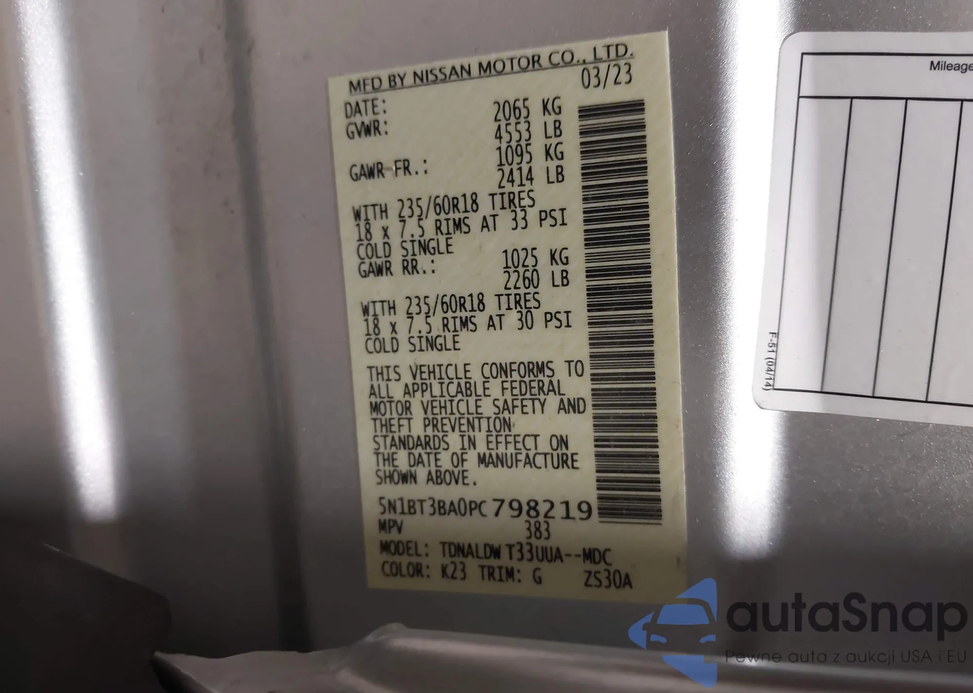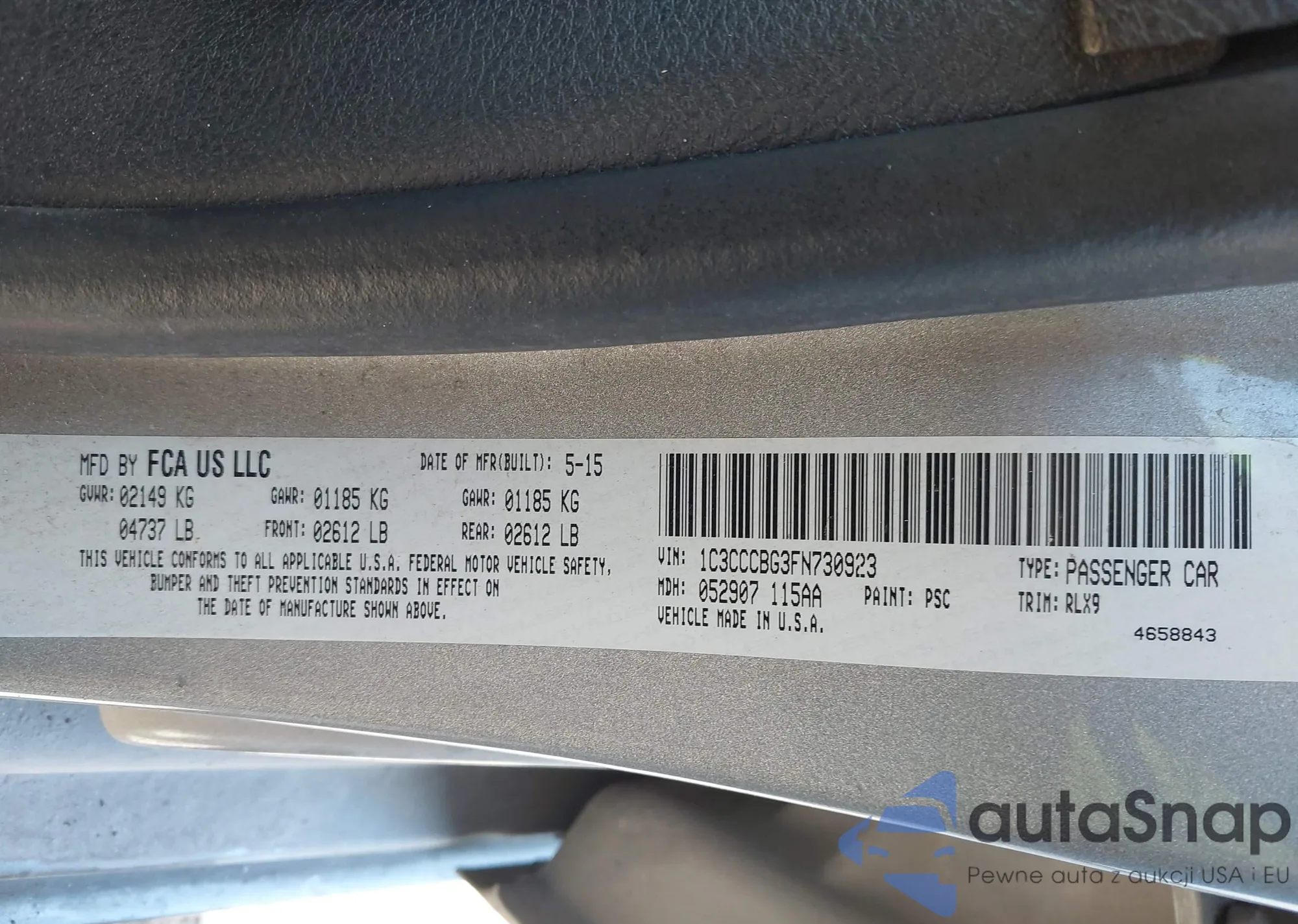 LOT: 43950391 VIN: 1C3CCCBG3FN730923