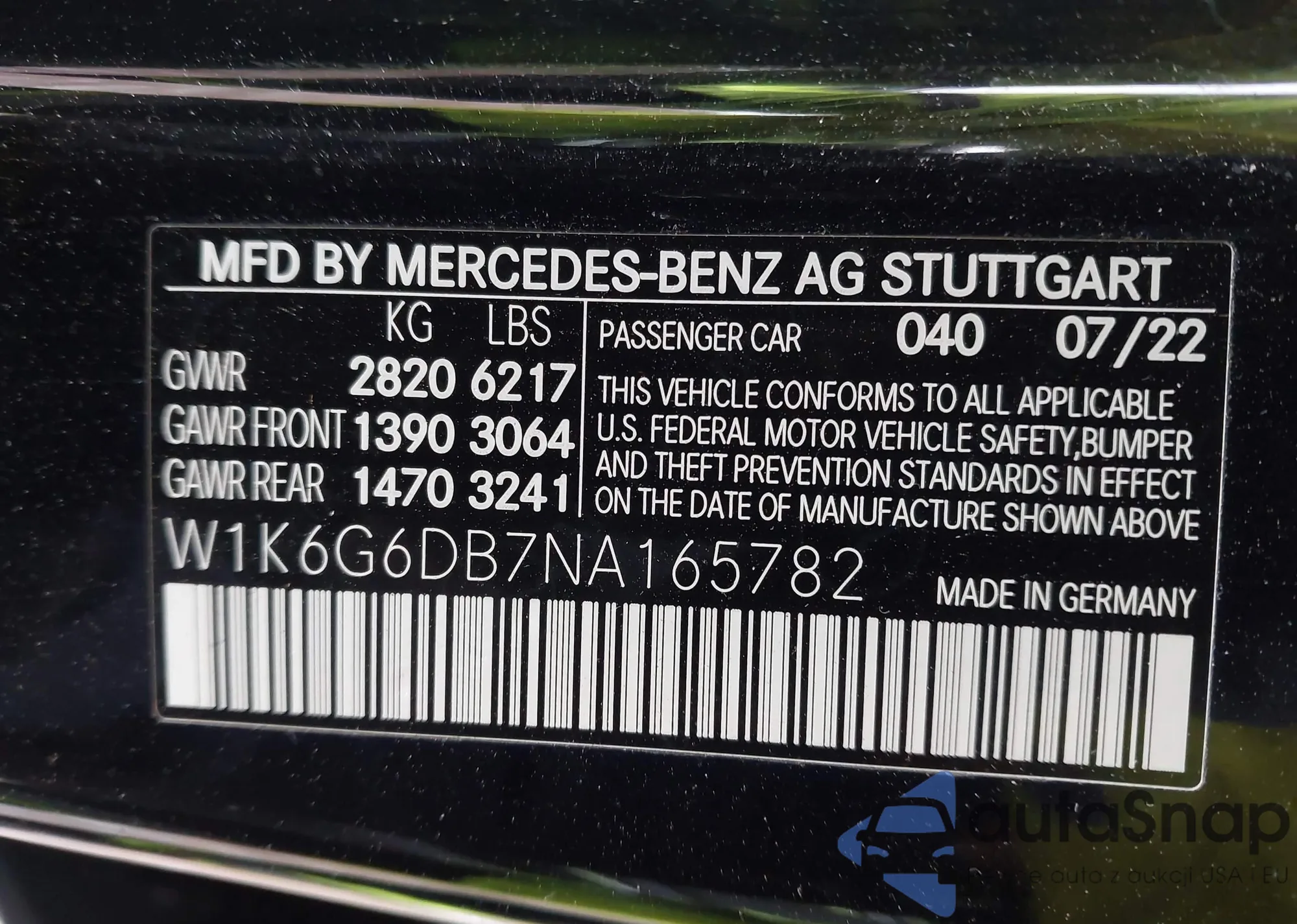 • VIN W1K6G6DB7NA165782