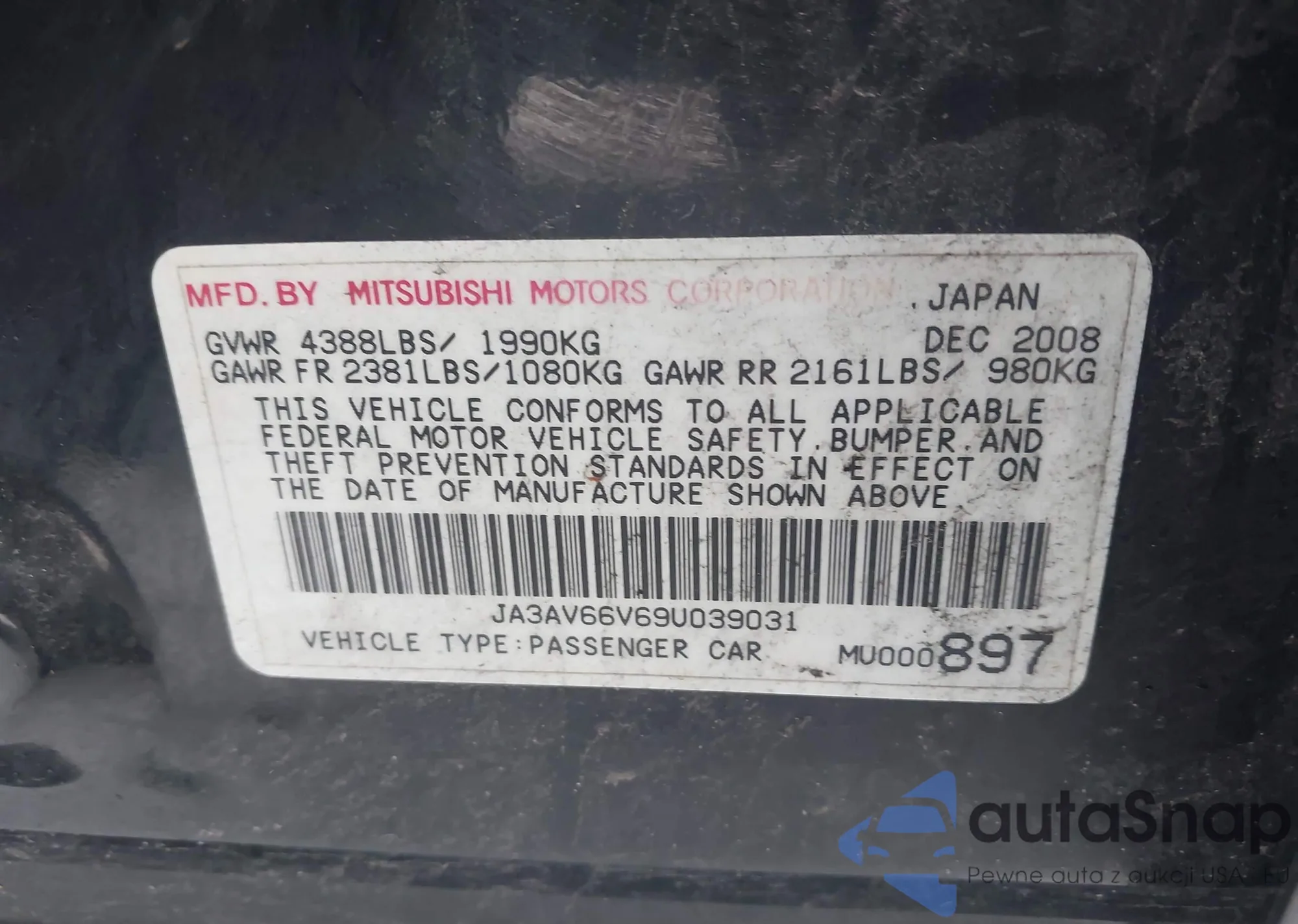 LOT: 43938335 VIN: 3G1BE6SM9KS599076