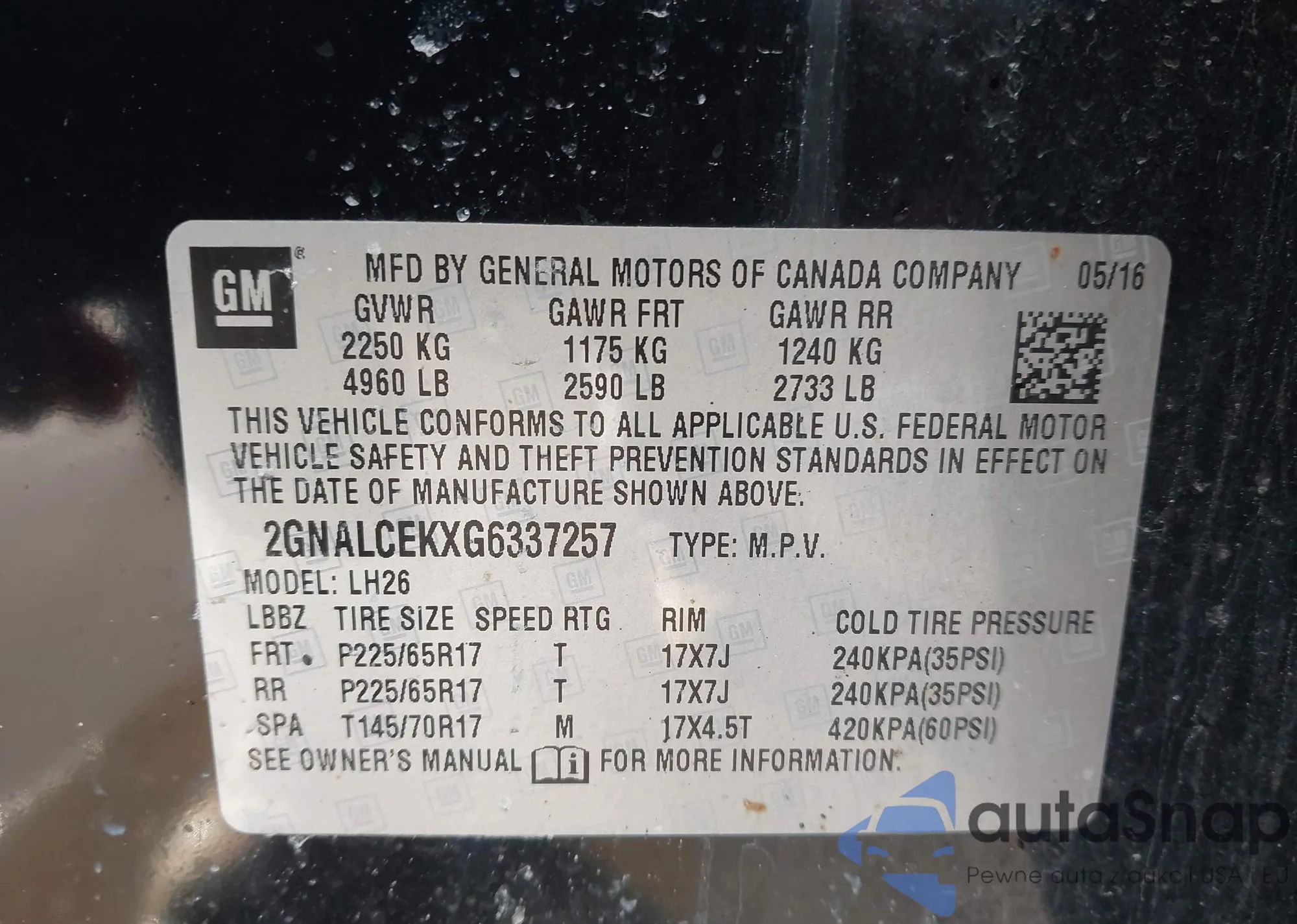 LOT: 43979125 VIN: 2GNALCEKXG6337257