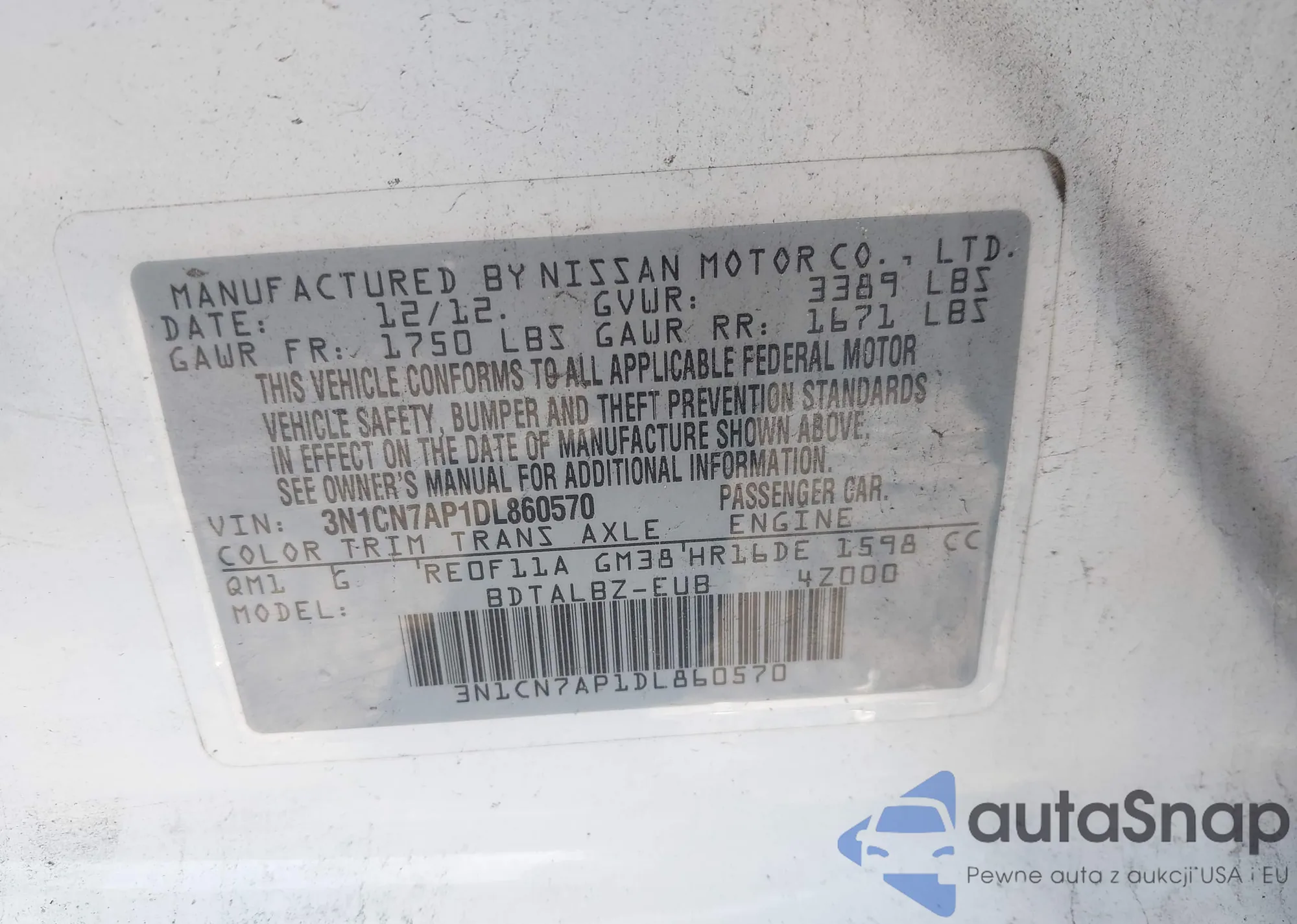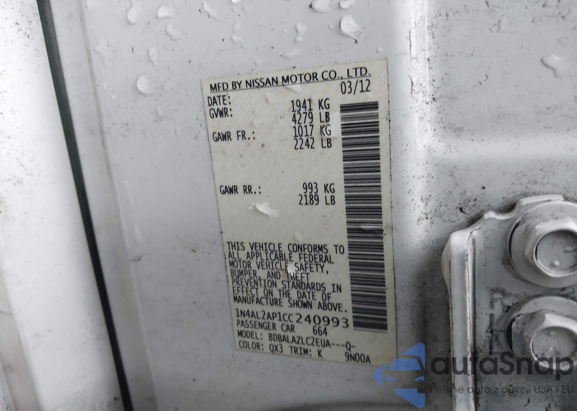 LOT: 44091419 VIN: 1N4AL2AP1CC240993