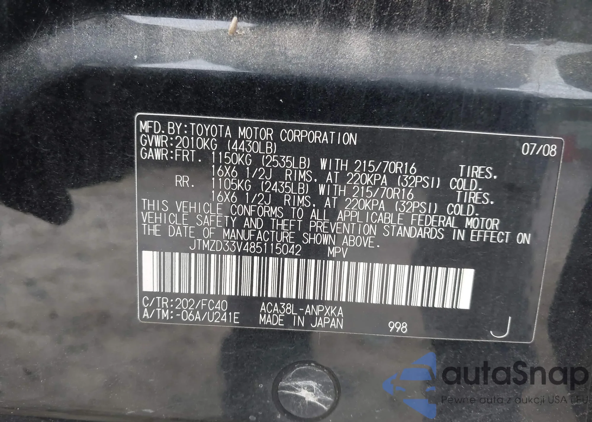 • VIN 5FRYD4H98GB001473