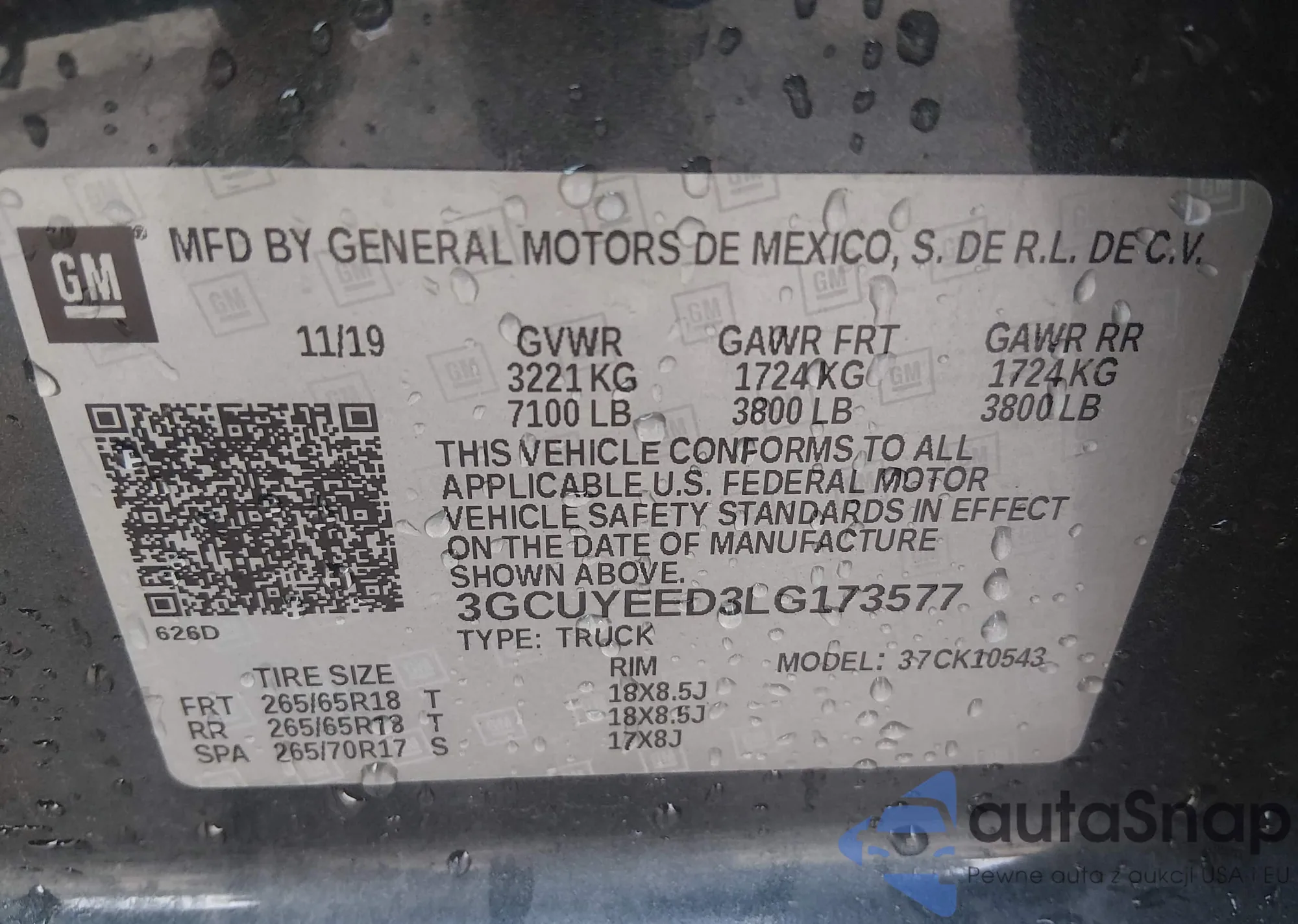 LOT: 44003795 VIN: 3GCUYEED3LG173577