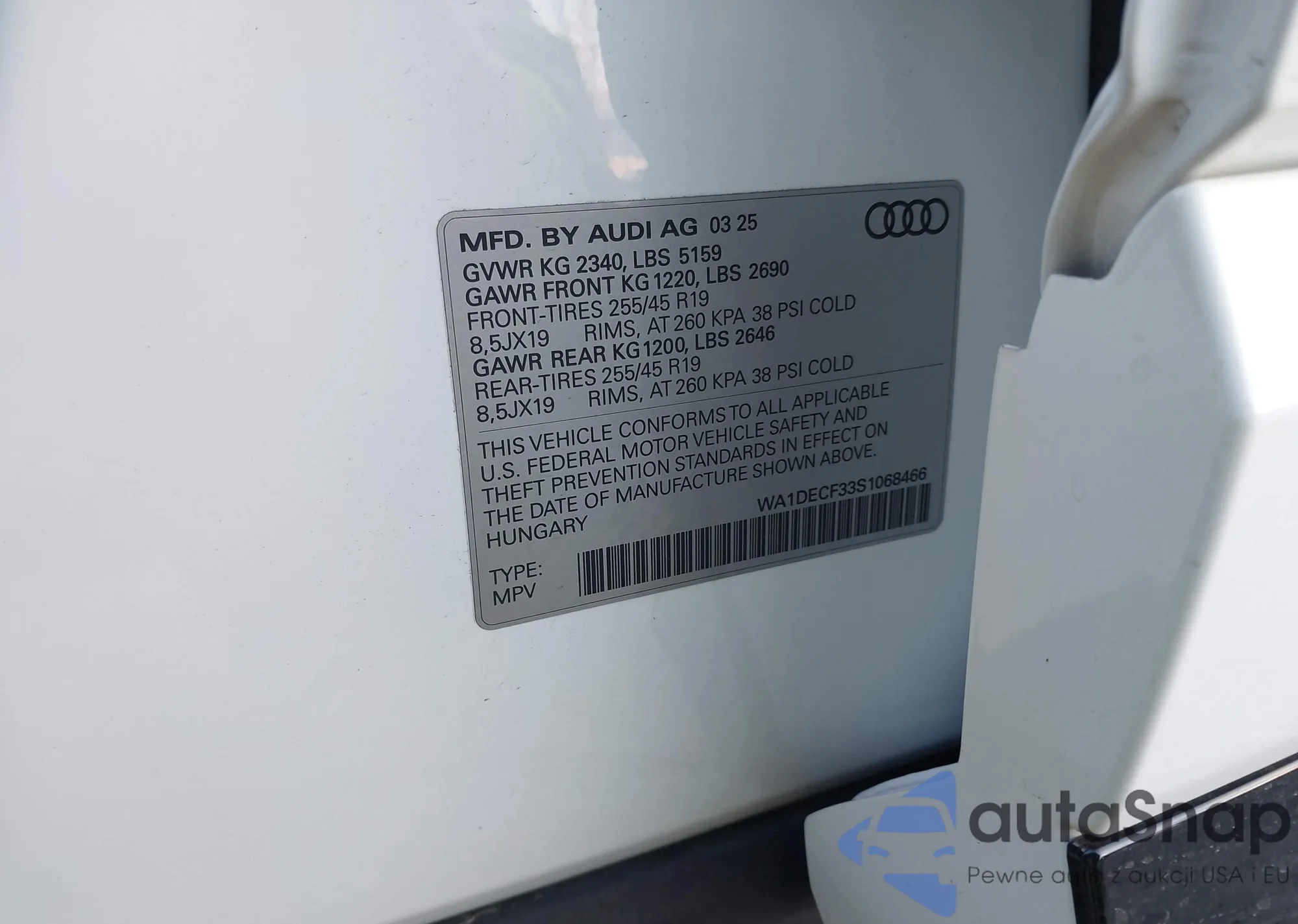 LOT: 43989829 VIN: WA1DECF33S1068466