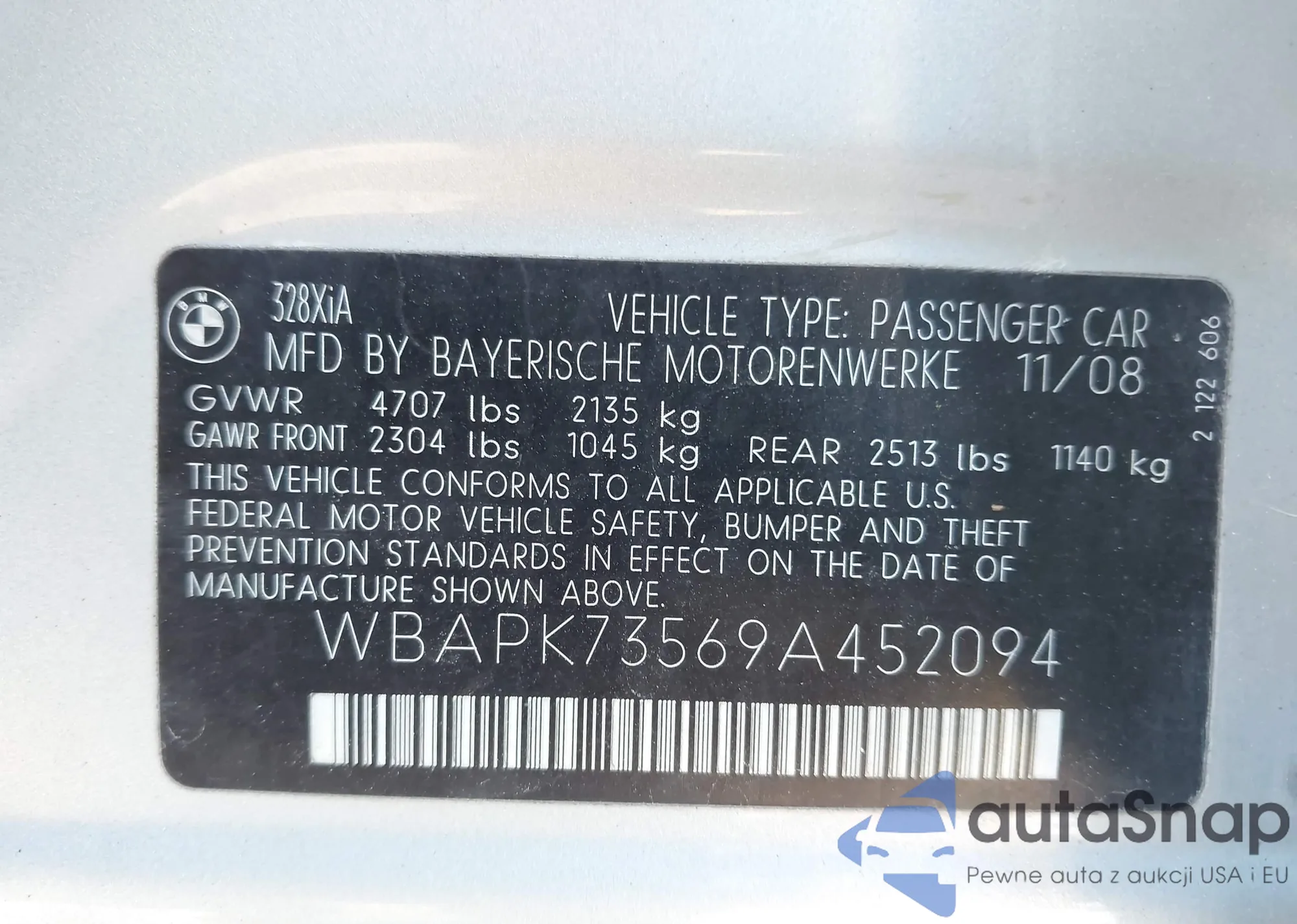 LOT: 44111670 VIN: WBAPK73569A452094