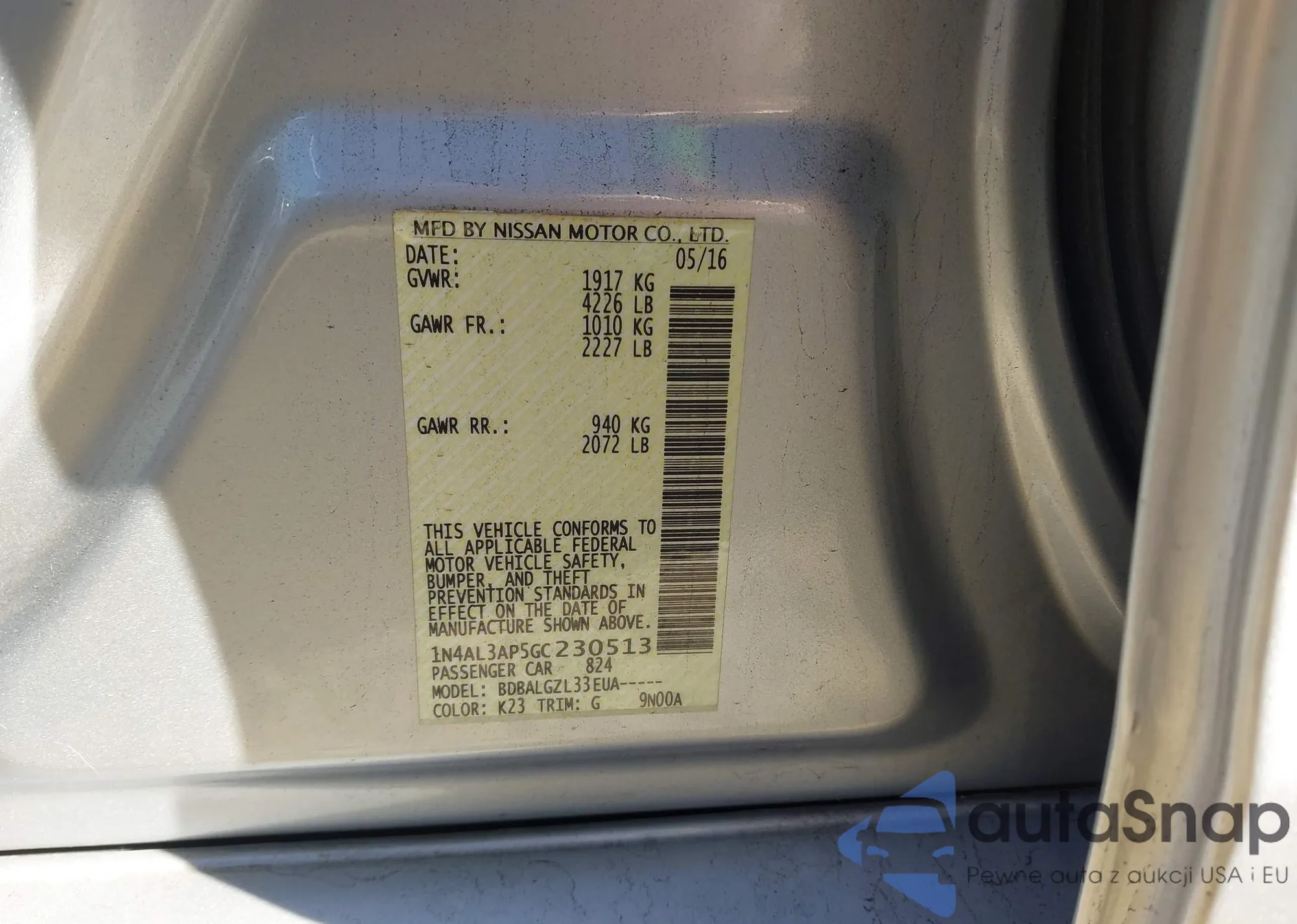• VIN 1N4AL3AP5GC230513