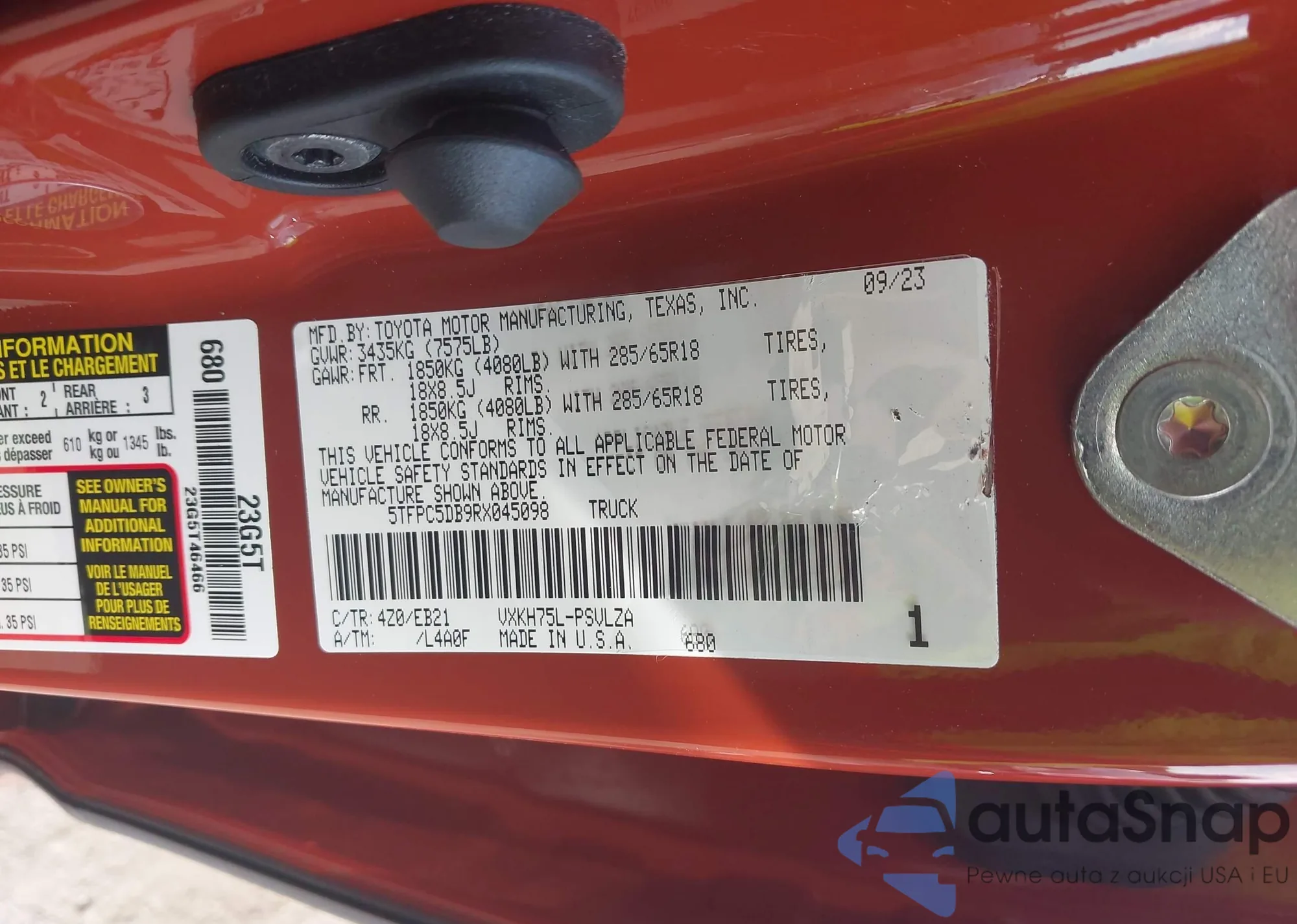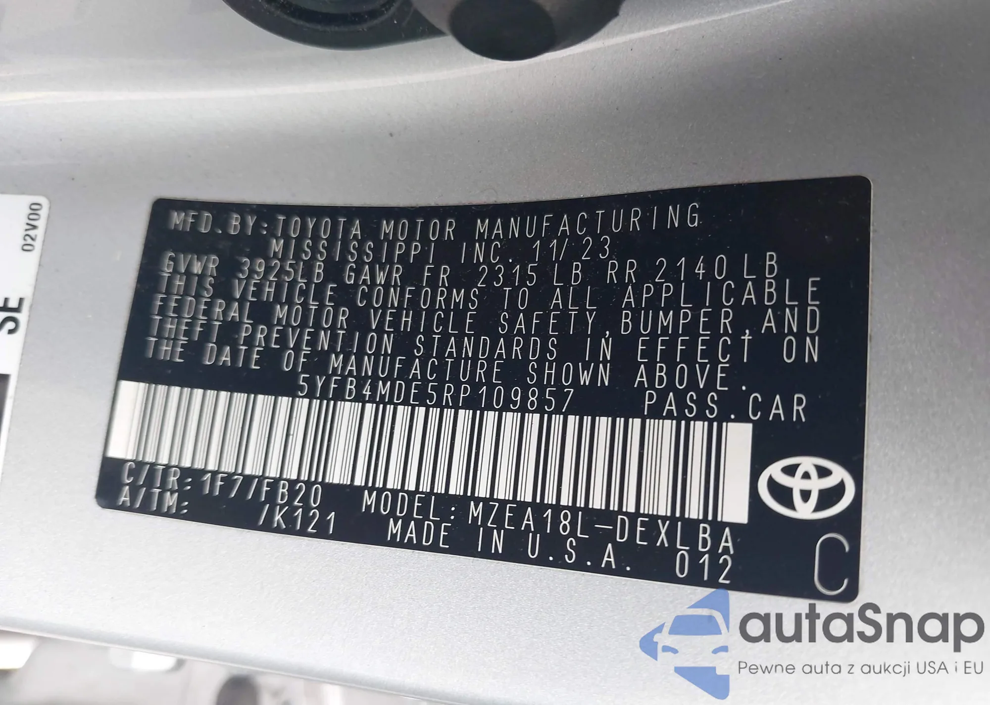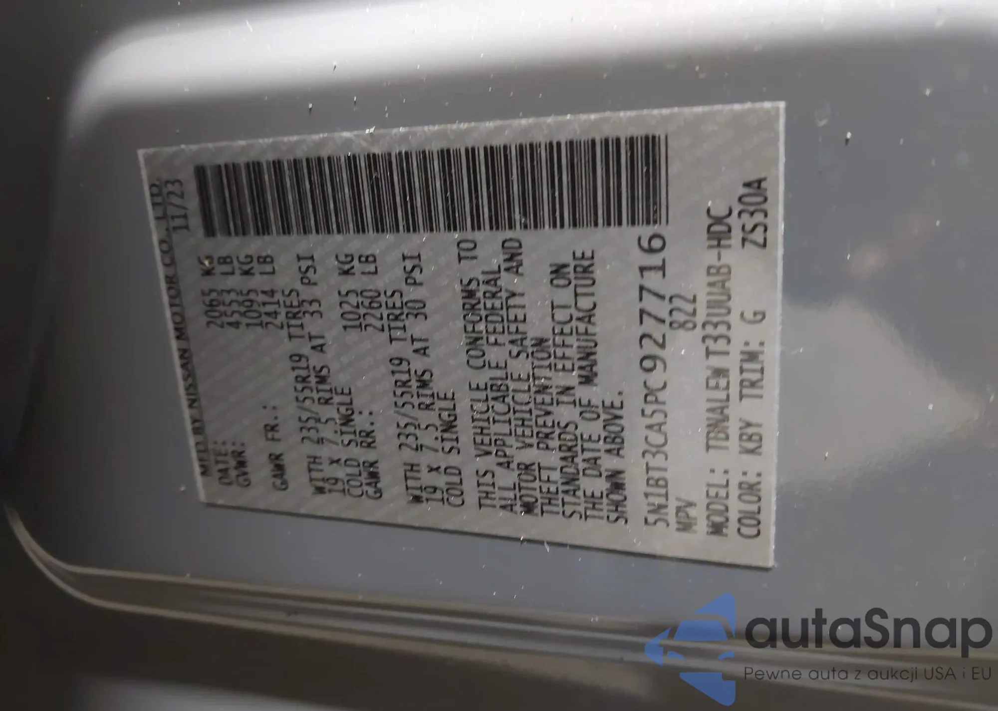 • VIN 5N1BT3CA5PC927716