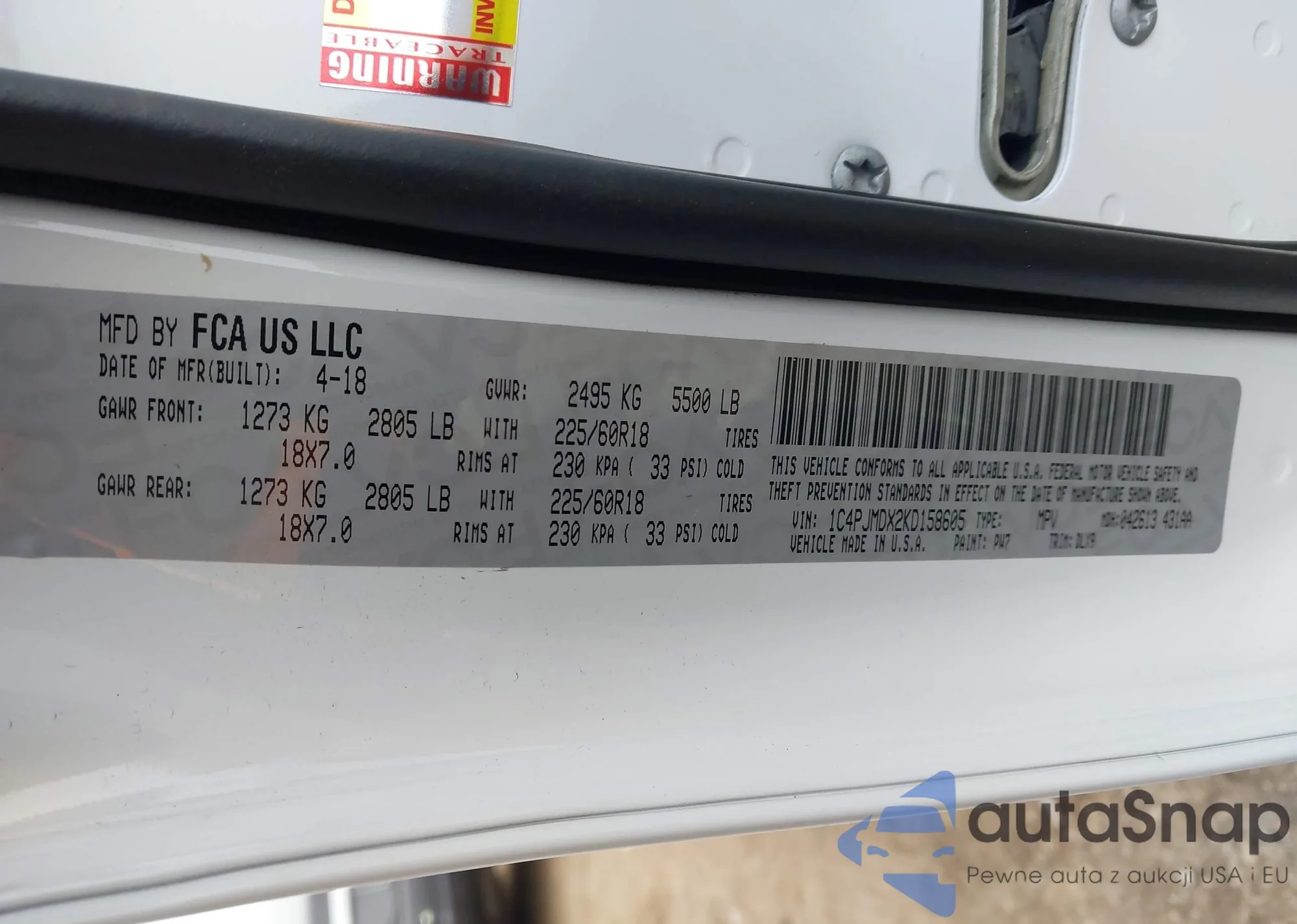• VIN 1C4PJMDX2KD158605