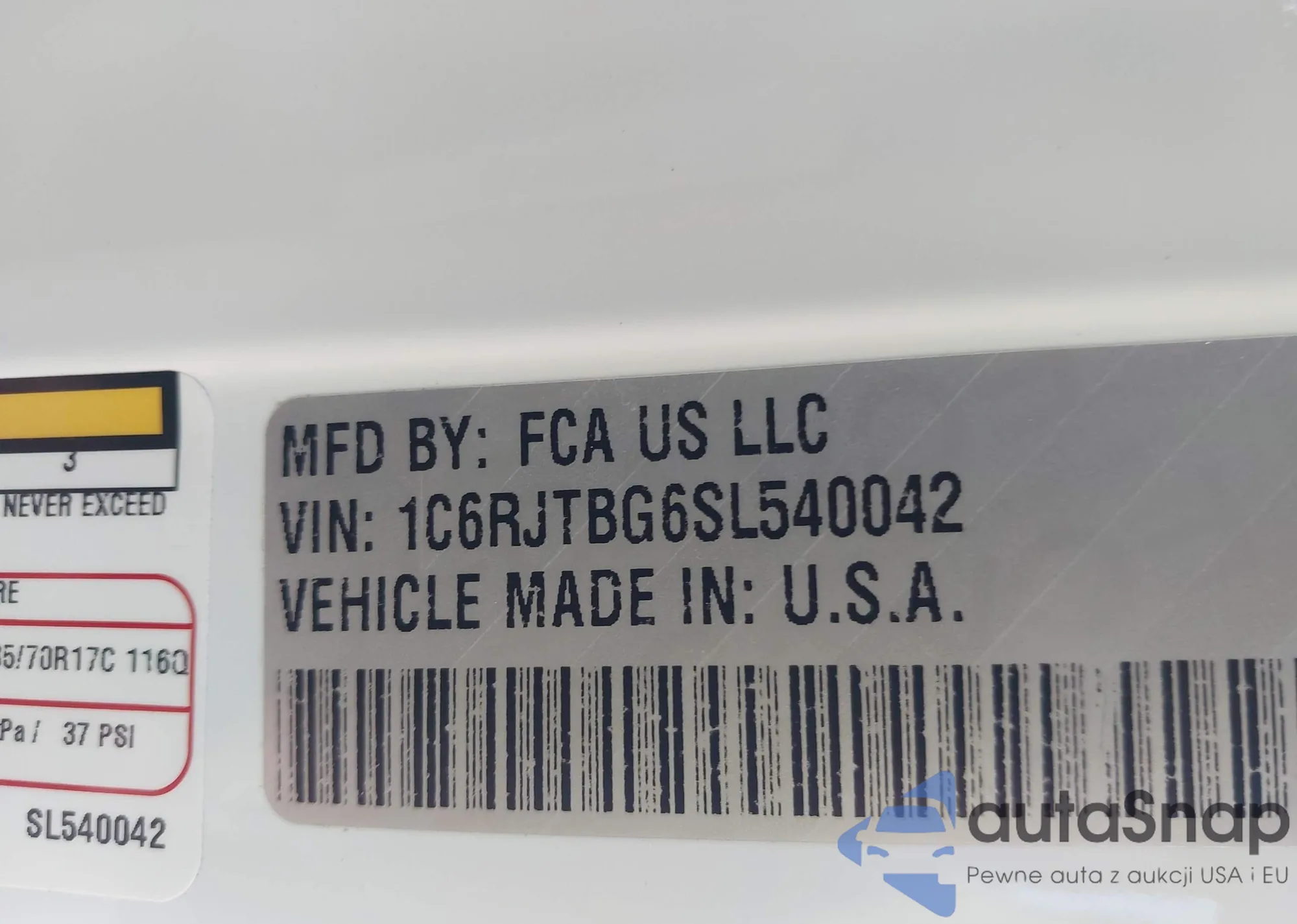 • VIN 1C6RJTBG6SL540042