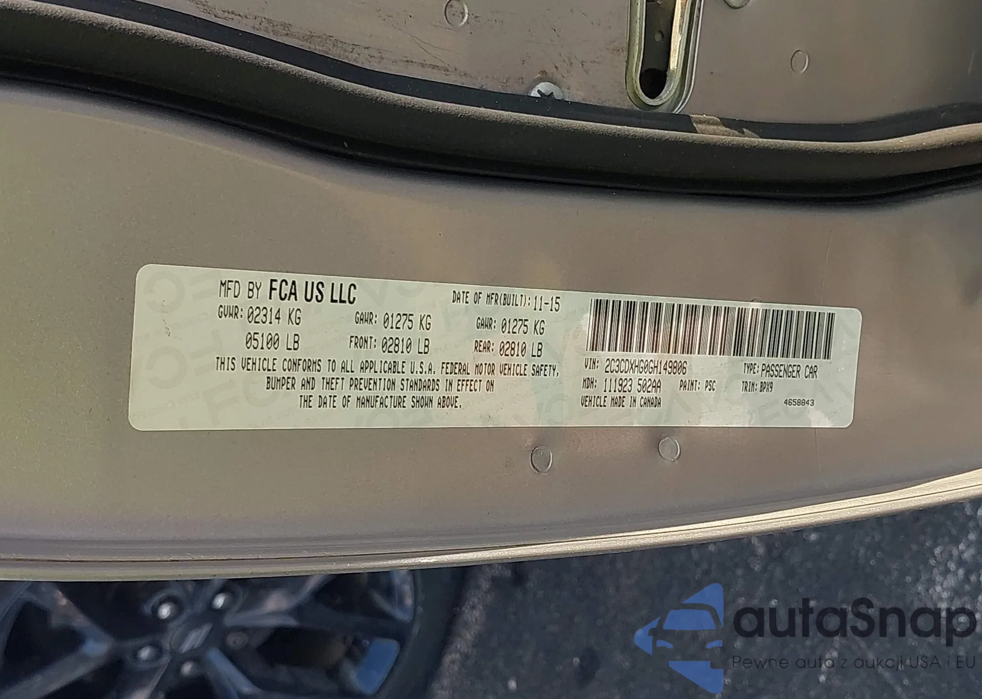 • VIN 2C3CDXHG0GH149806
