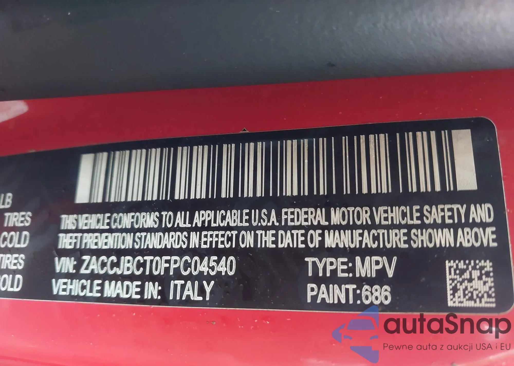 LOT: 43795033 VIN: ZACCJBCT0FPC04540