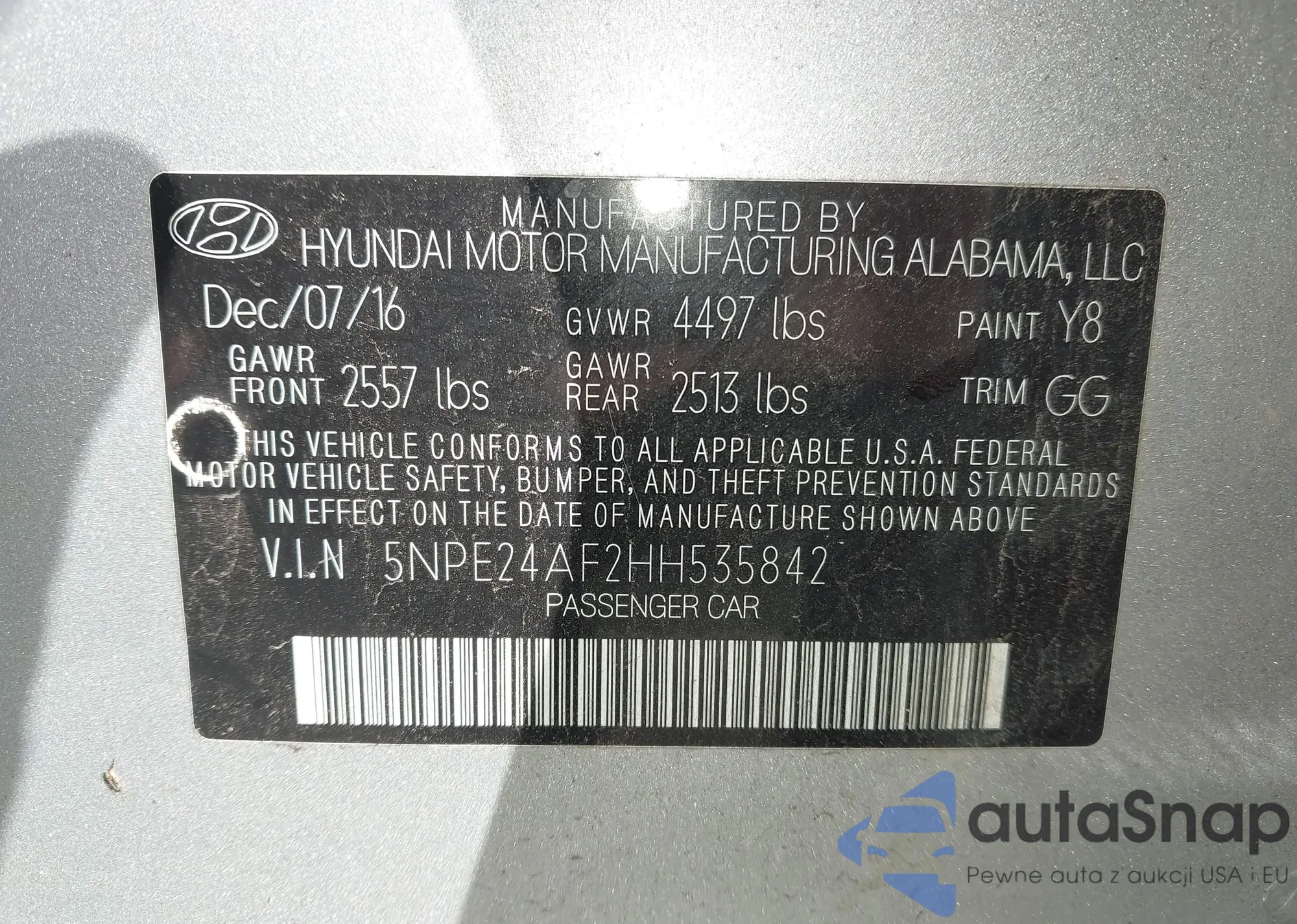 • VIN 5NPE24AF2HH535842