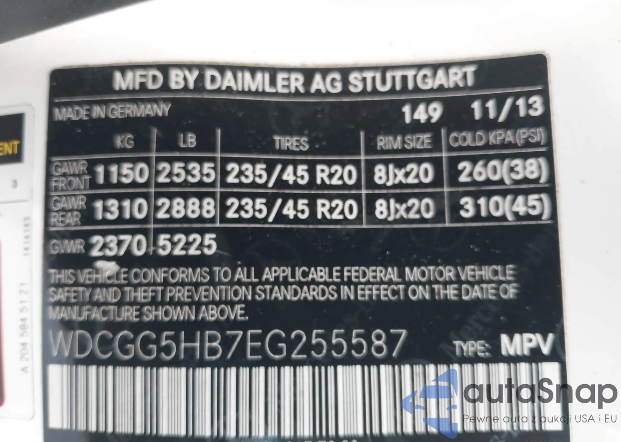 • VIN WDCGG5HB7EG255587