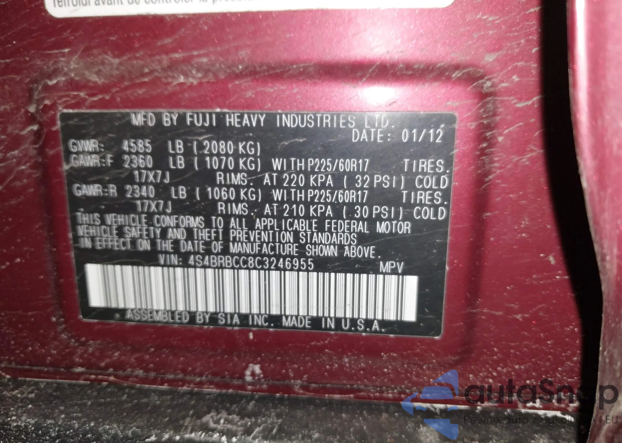 • VIN 4S4BRBCC8C3246955
