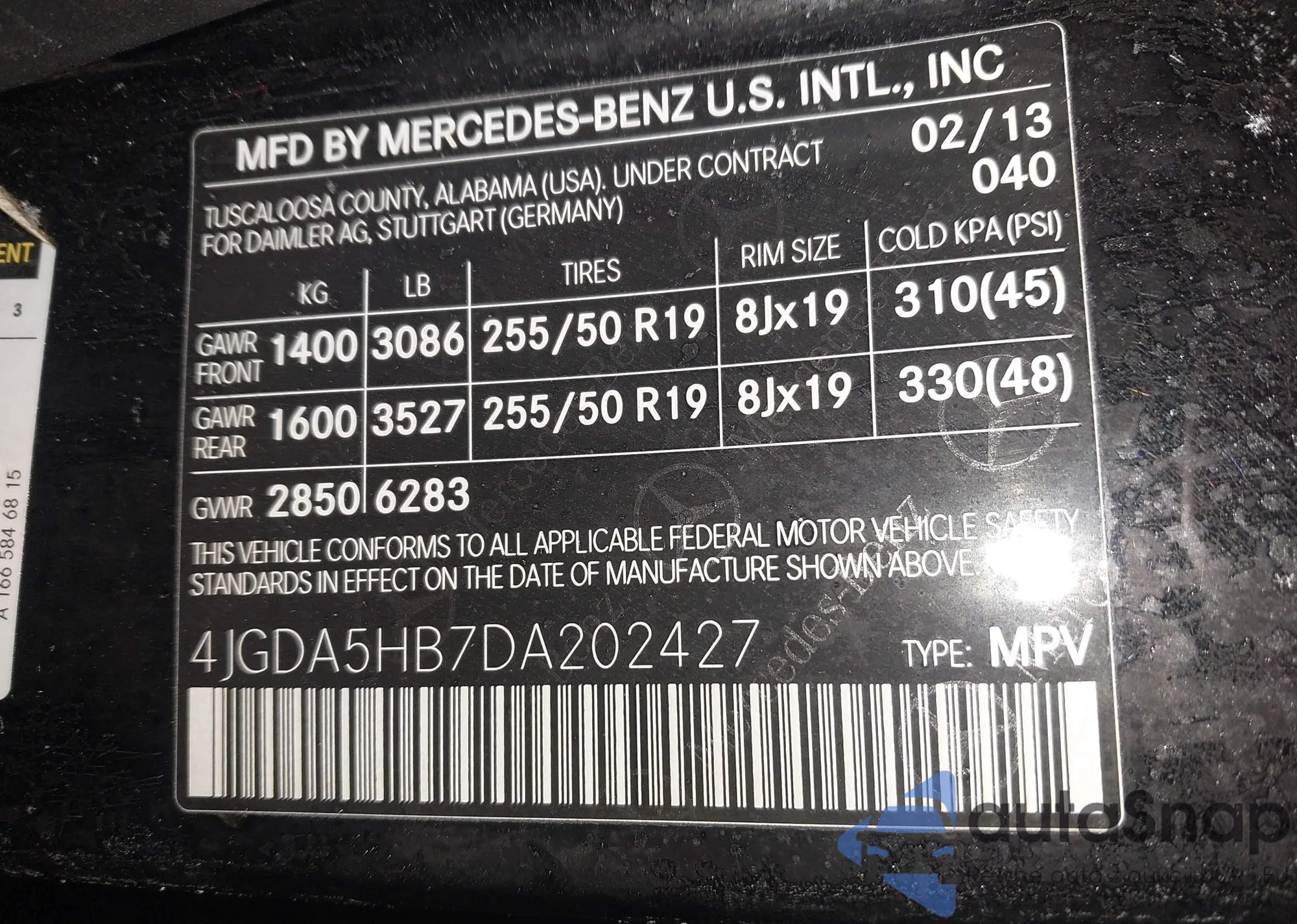 • VIN 4JGDA5HB7DA202427