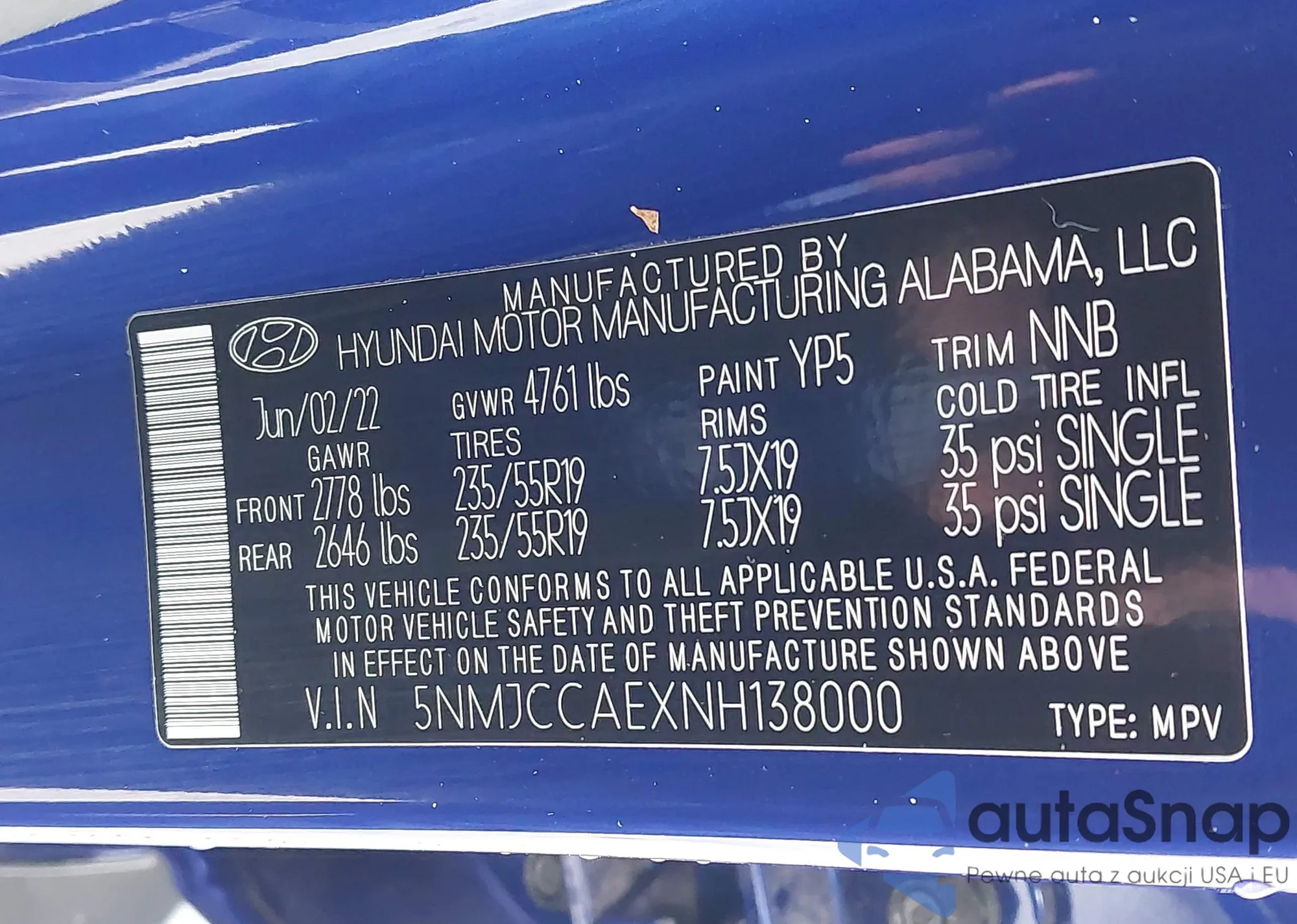• VIN 5NMJCCAEXNH138000
