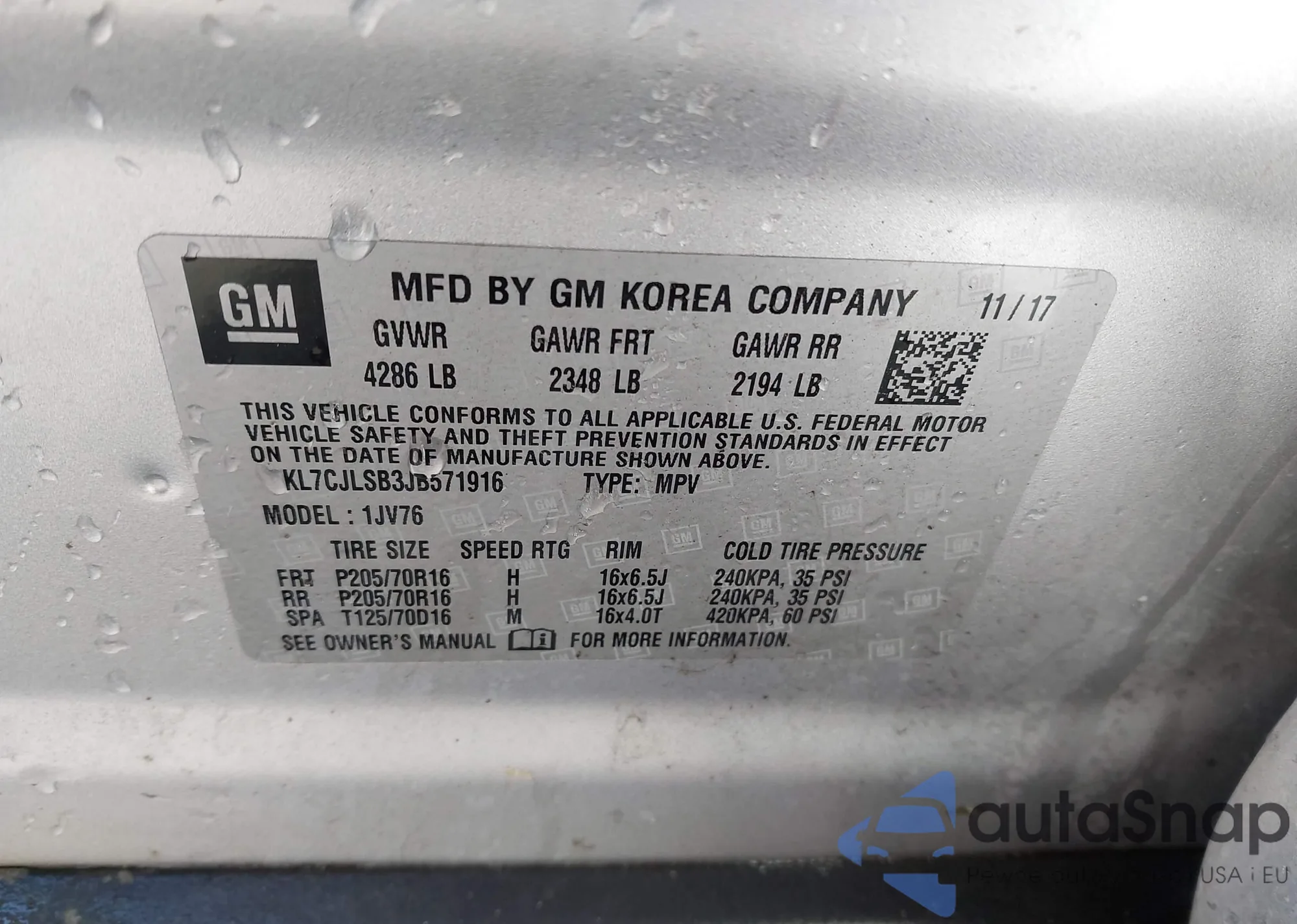 • VIN KL7CJLSB3JB571916