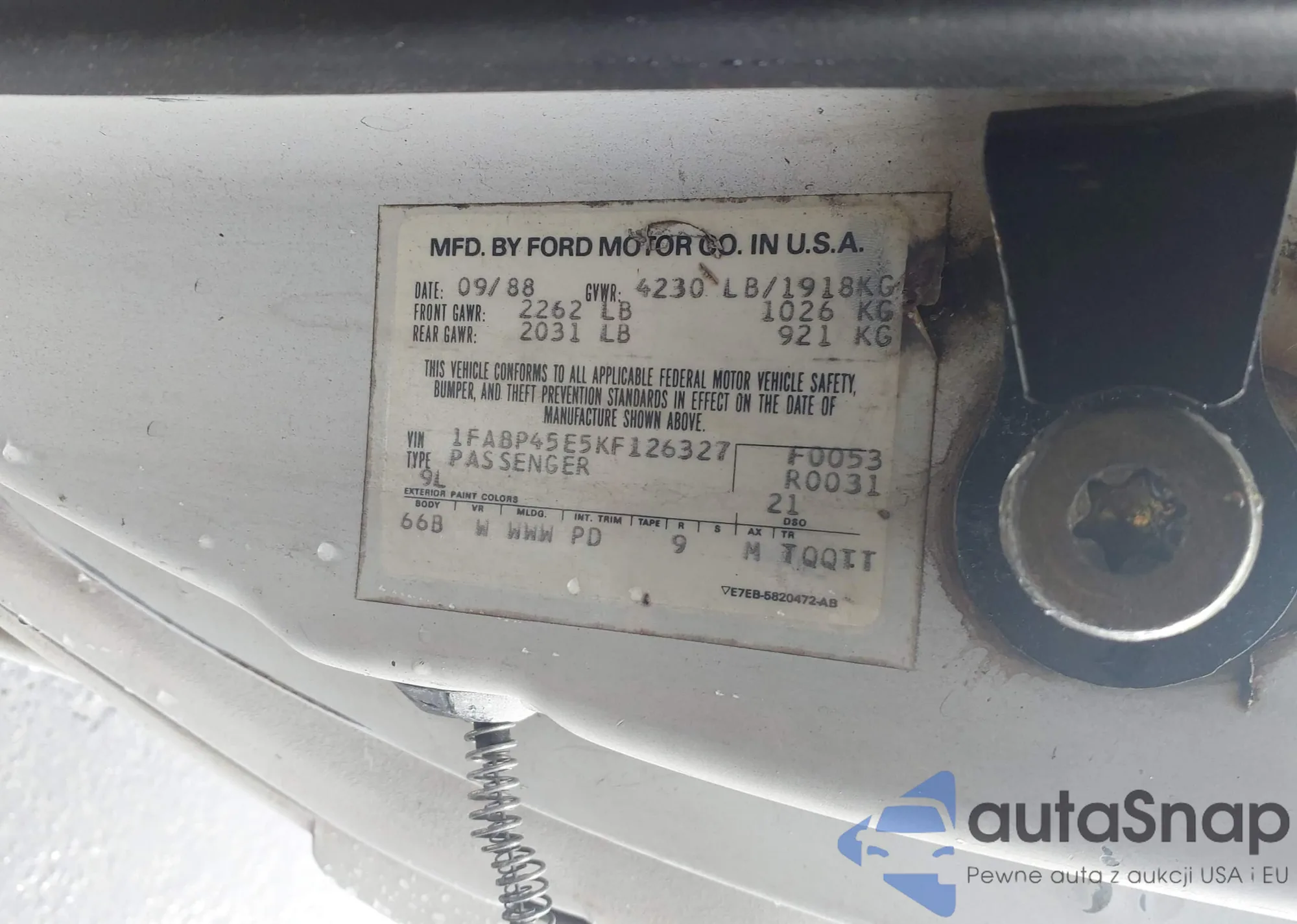 LOT: 44231447 VIN: 1FABP45E5KF126327