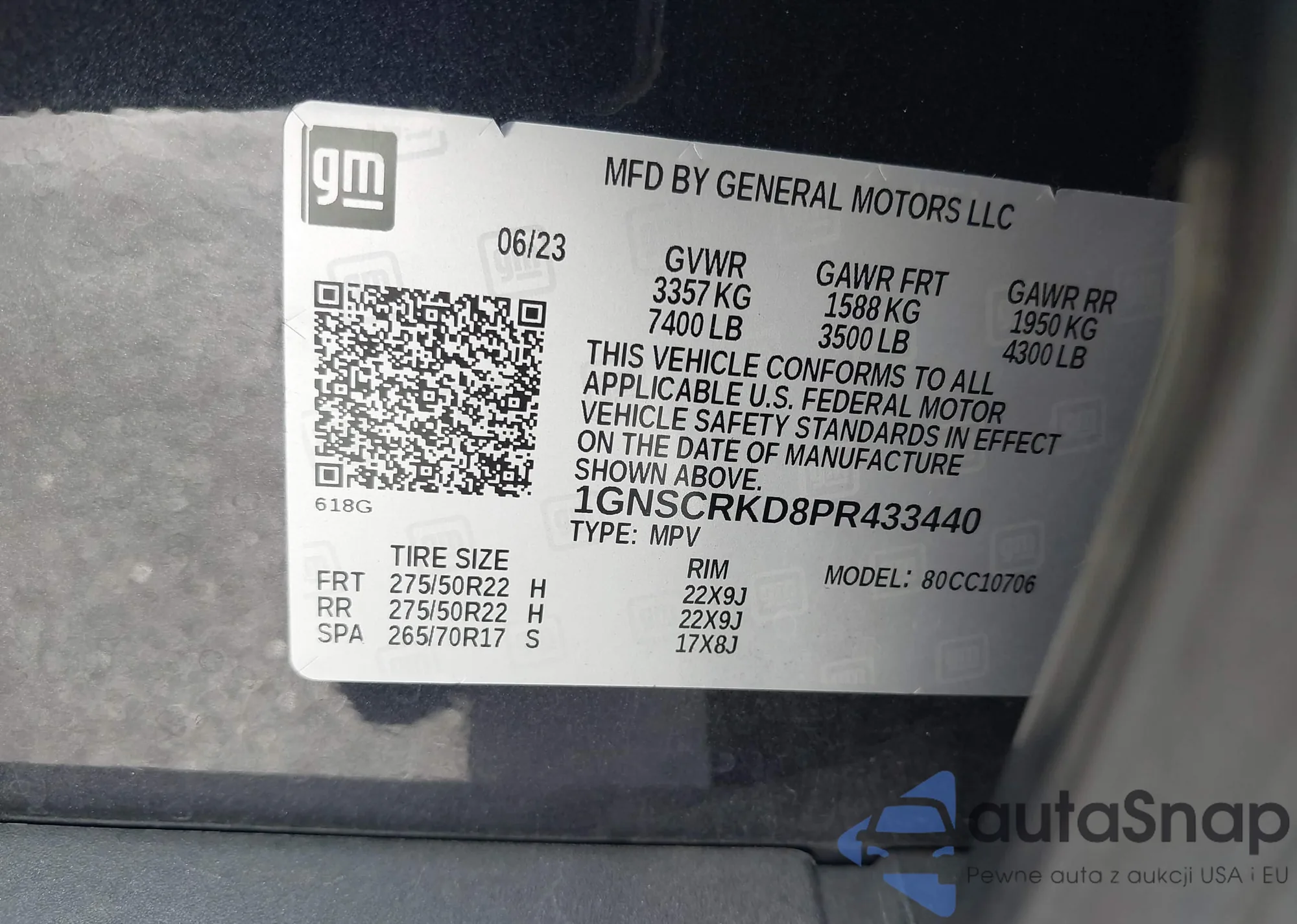LOT: 43908555 VIN: 1GNSCRKD8PR433440