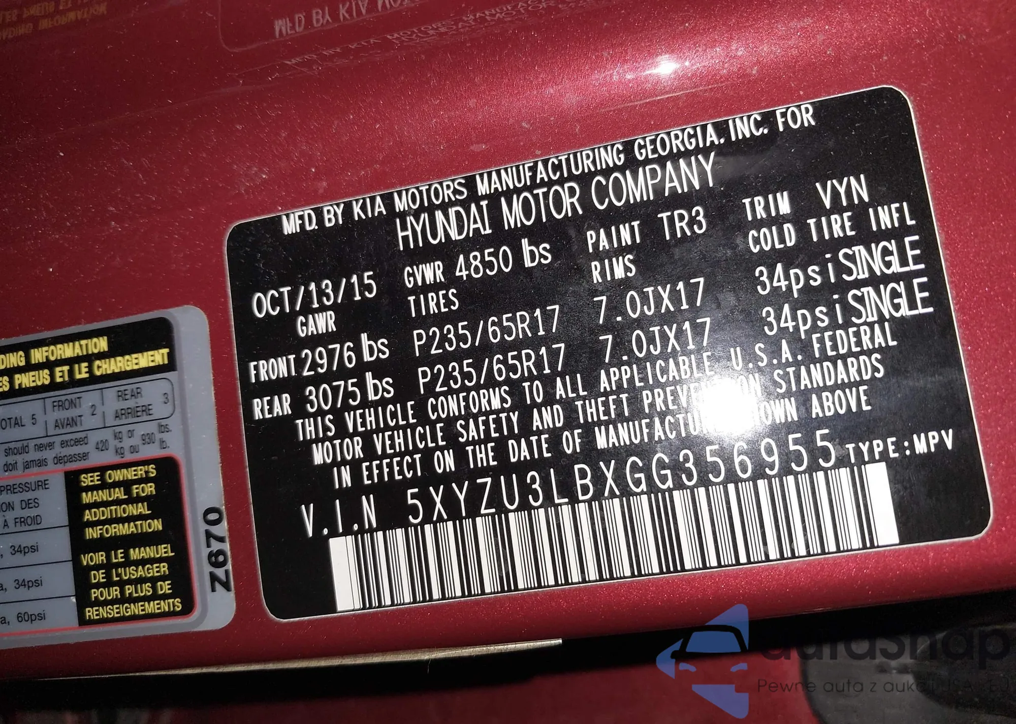 • VIN 5XYZU3LBXGG356955