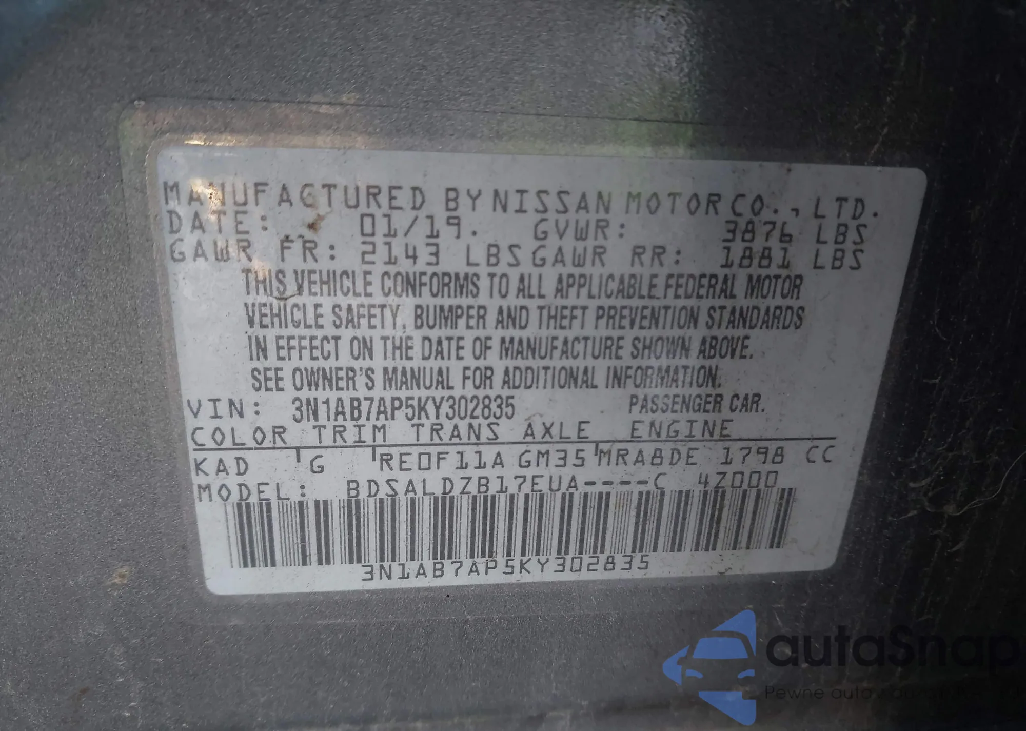 LOT: 44158449 VIN: 1N4AL2AP8CN477825