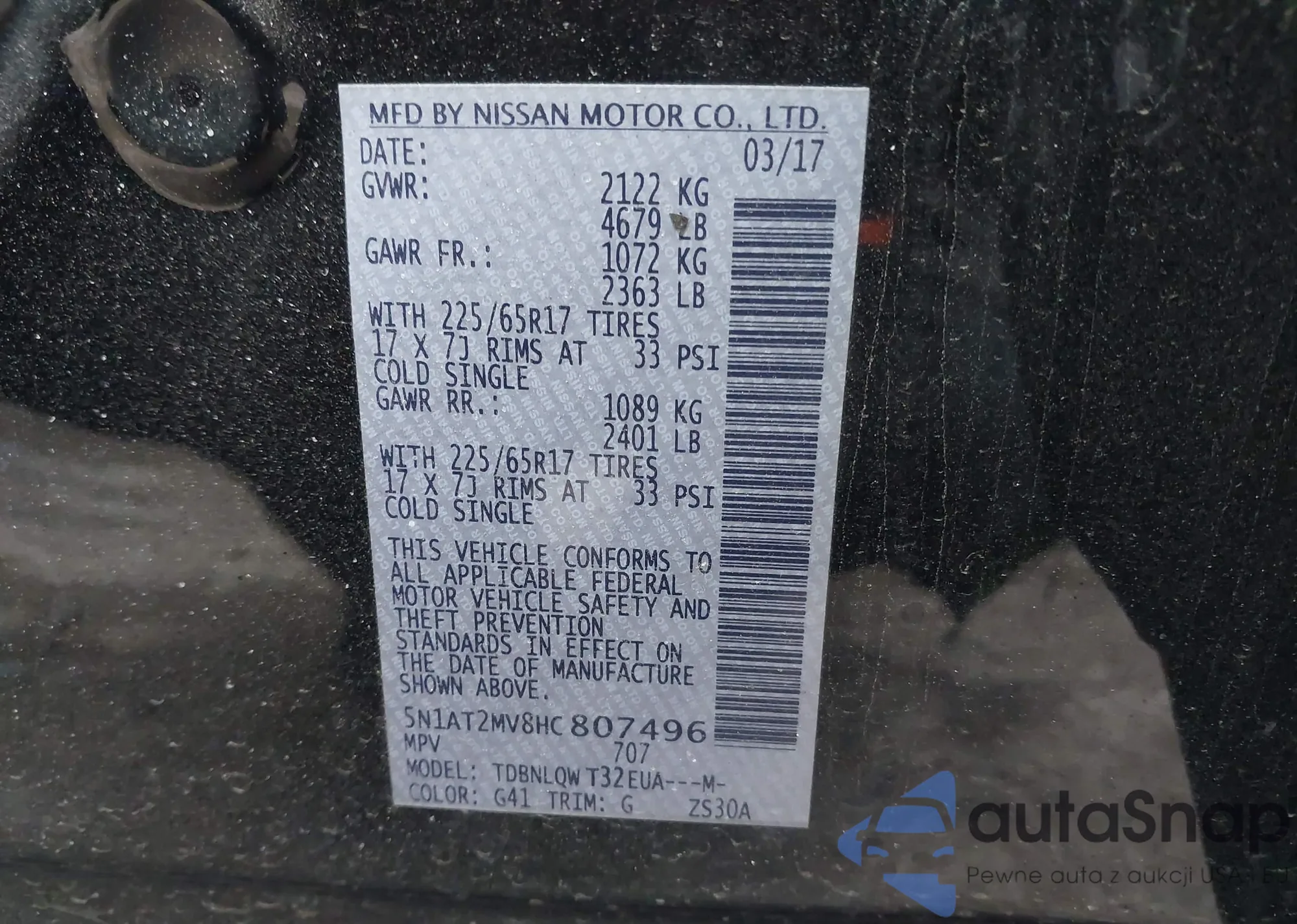 LOT: 43793738 VIN: 5N1AT2MV8HC807496