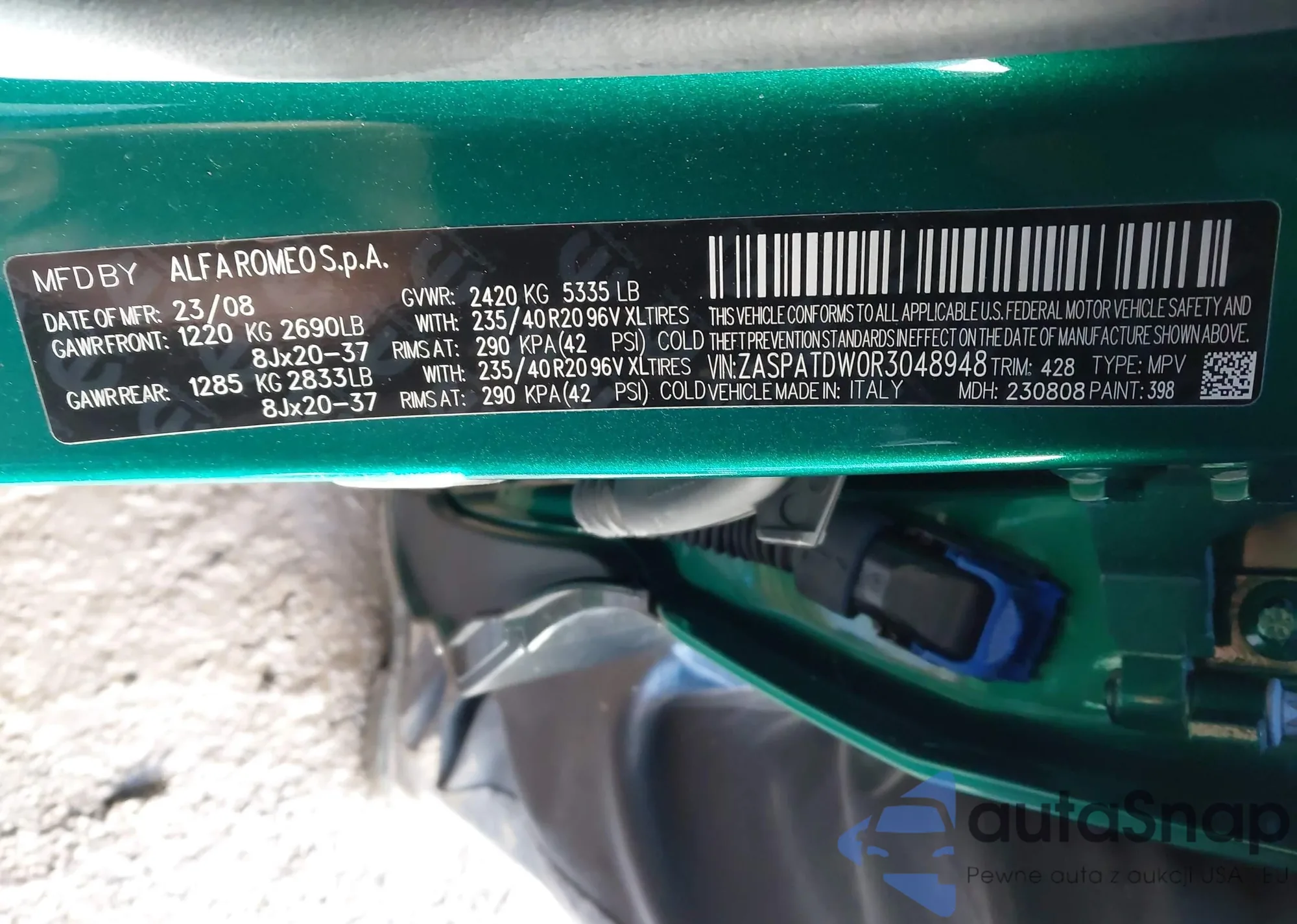 LOT: 43875993 VIN: ZASPATDW0R3048948
