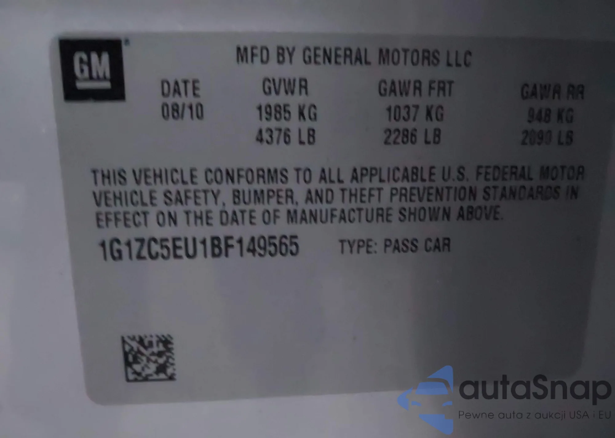 • VIN 1G1ZC5EU1BF149565