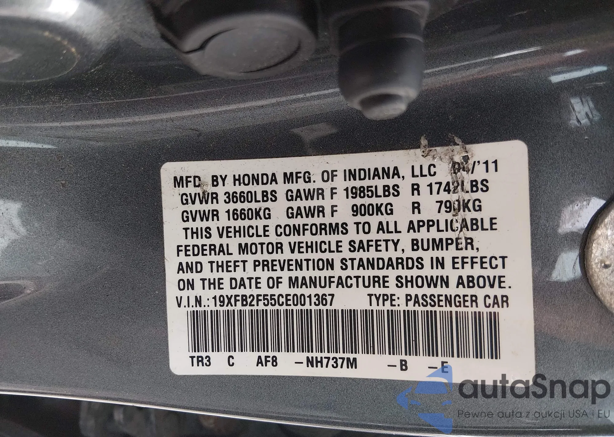 • VIN 19XFB2F55CE001367