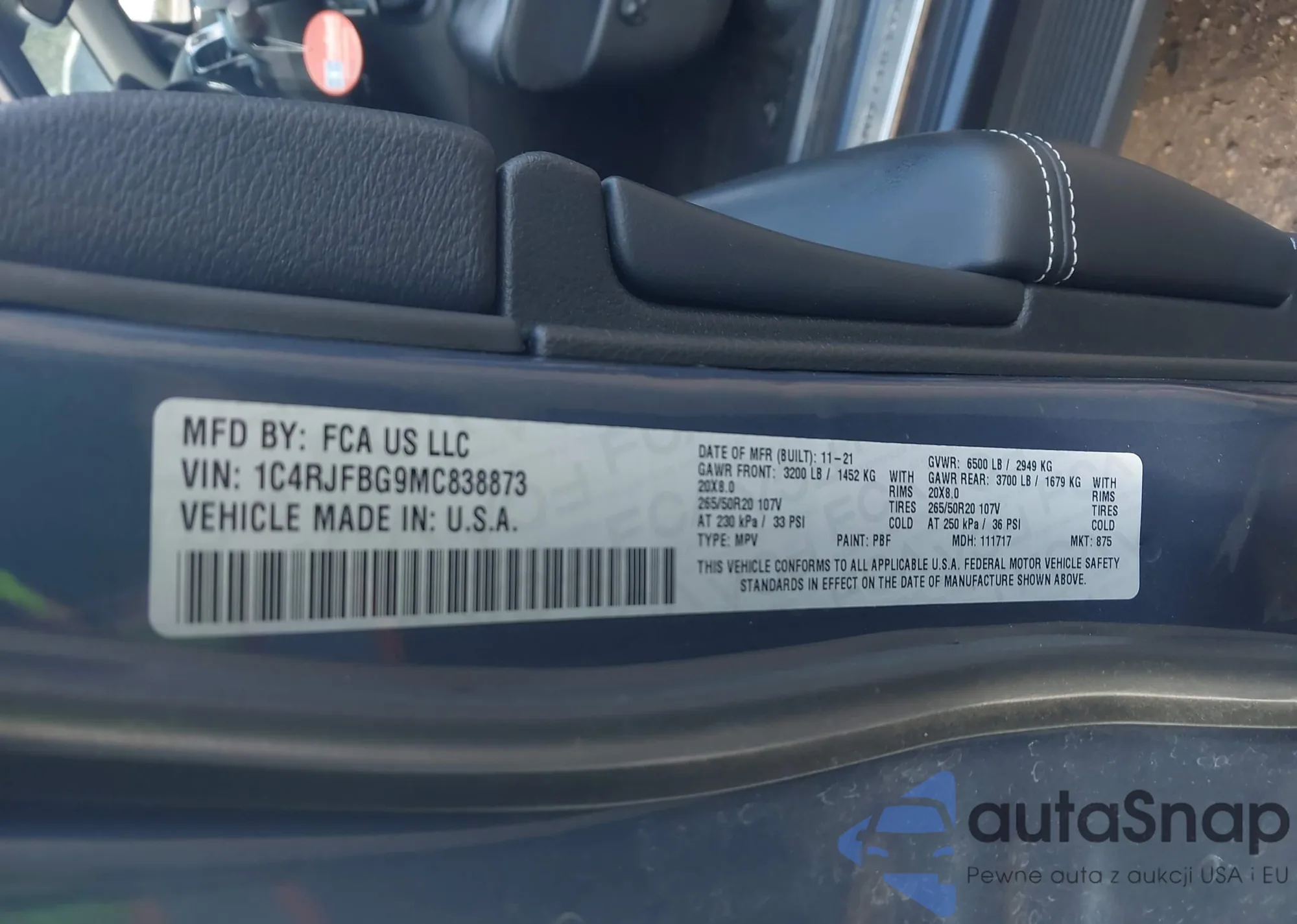 • VIN 1C4RJFBG9MC838873