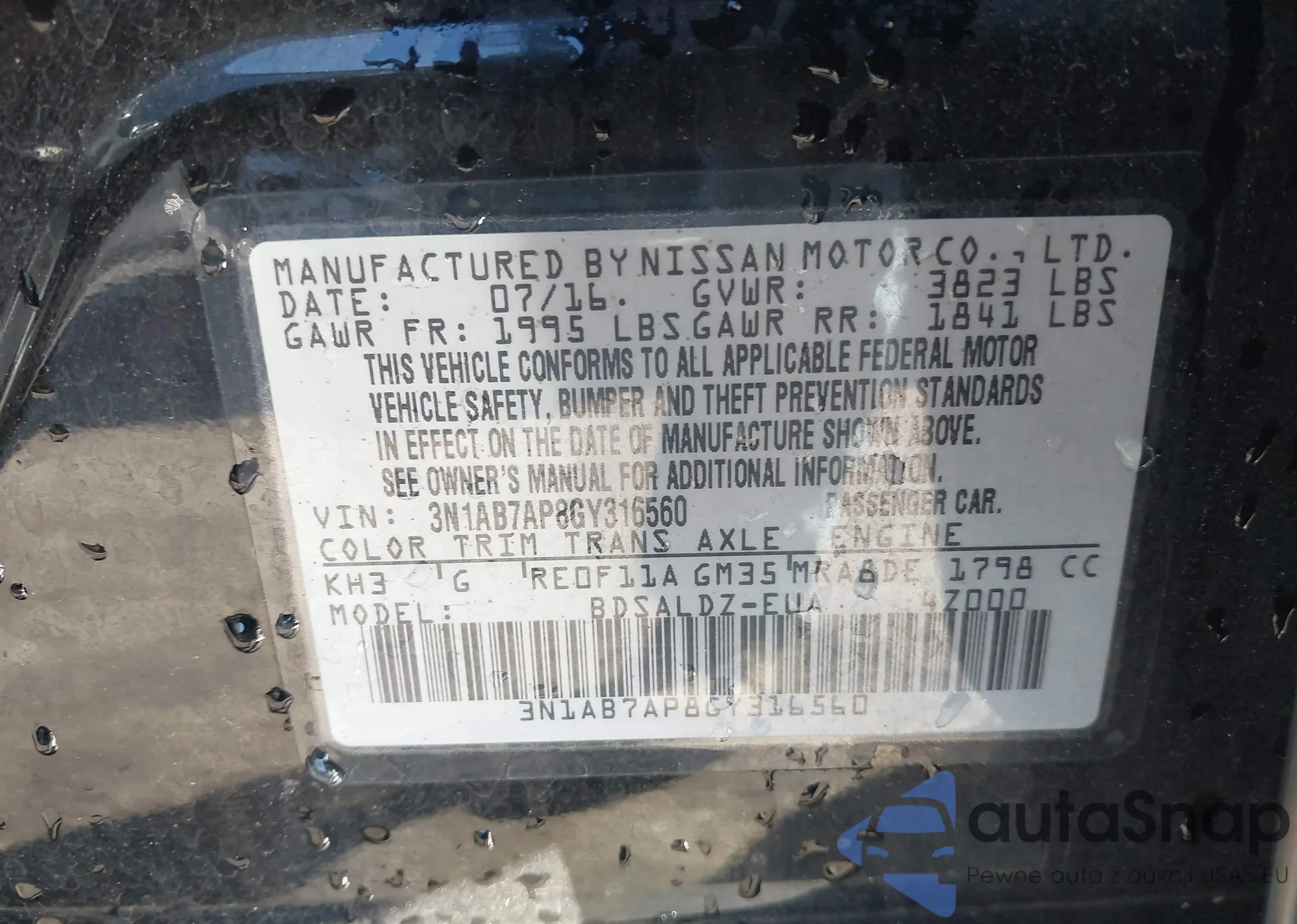LOT: 43995723 VIN: KNAFX4A61G5577470