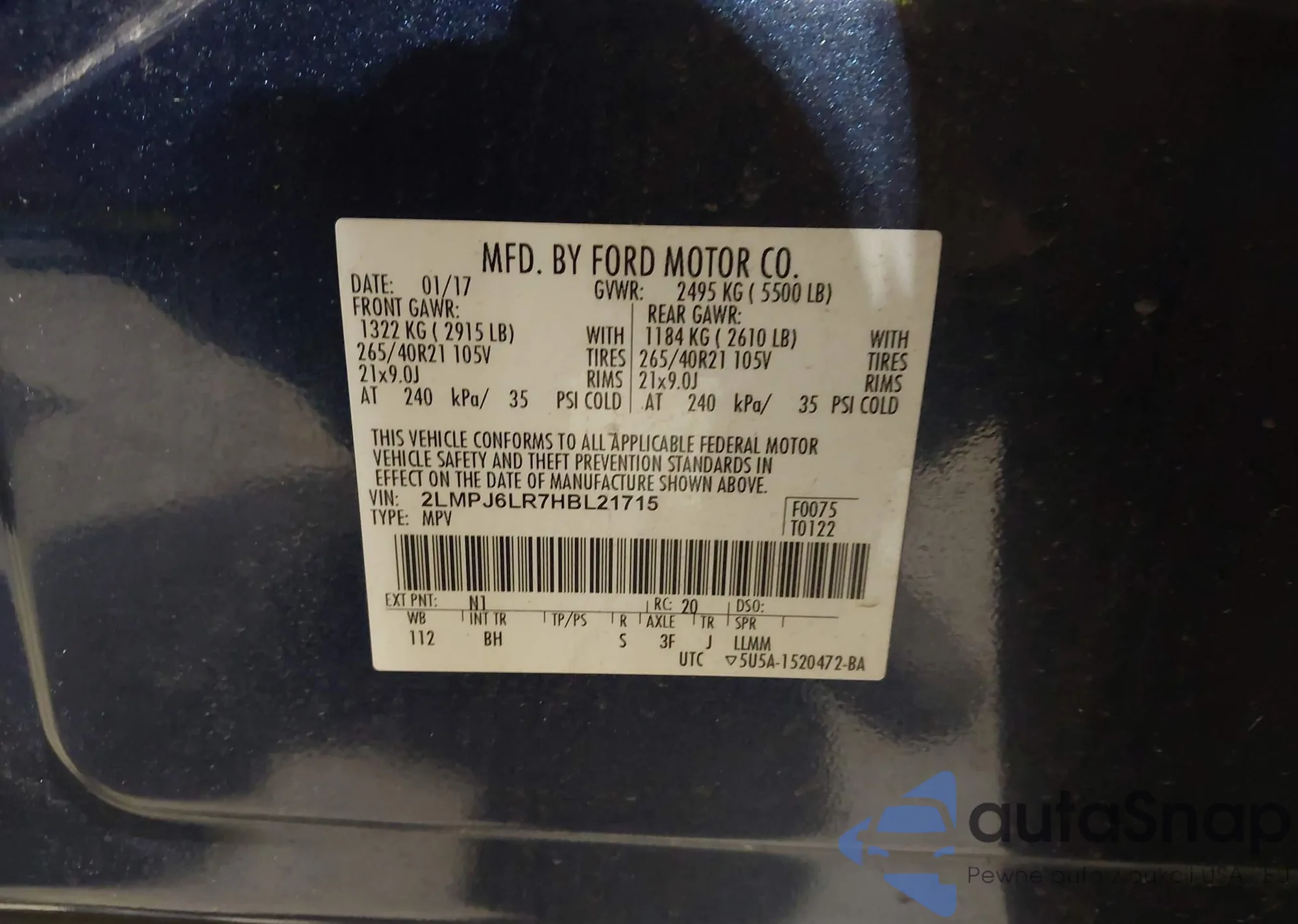 LOT: 43938388 VIN: 55SWF4KB0JU235868