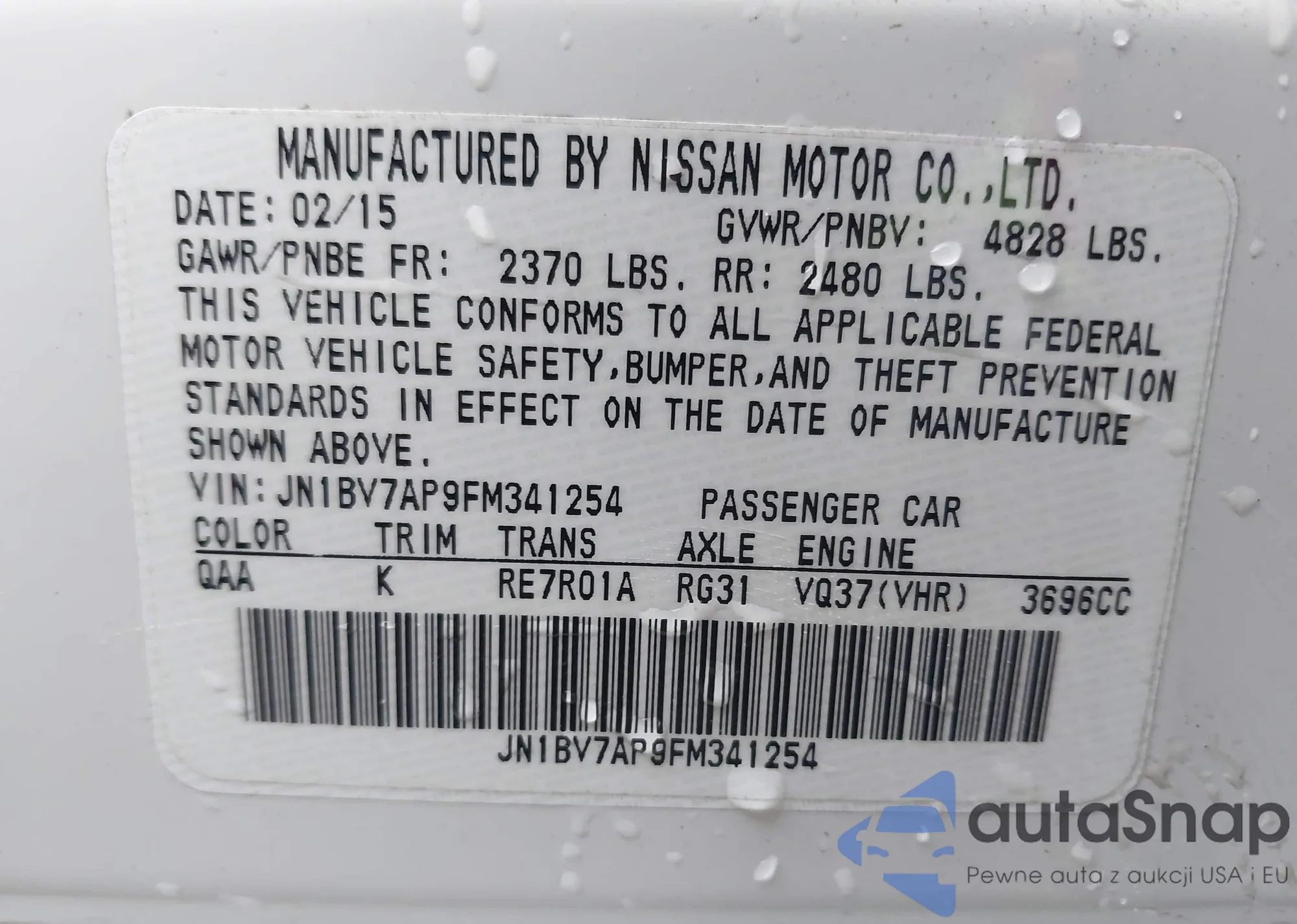 LOT: 43944702 VIN: JN1BV7AP9FM341254