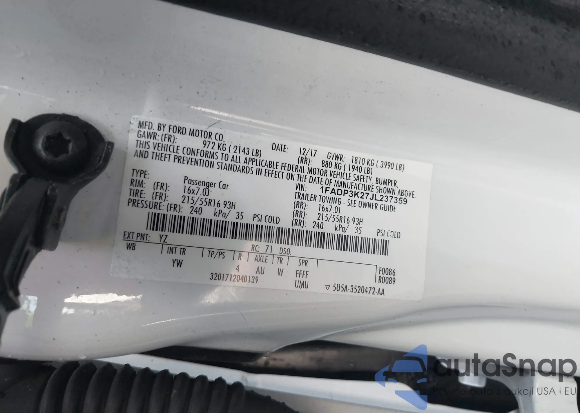 • VIN 1FADP3K27JL237359