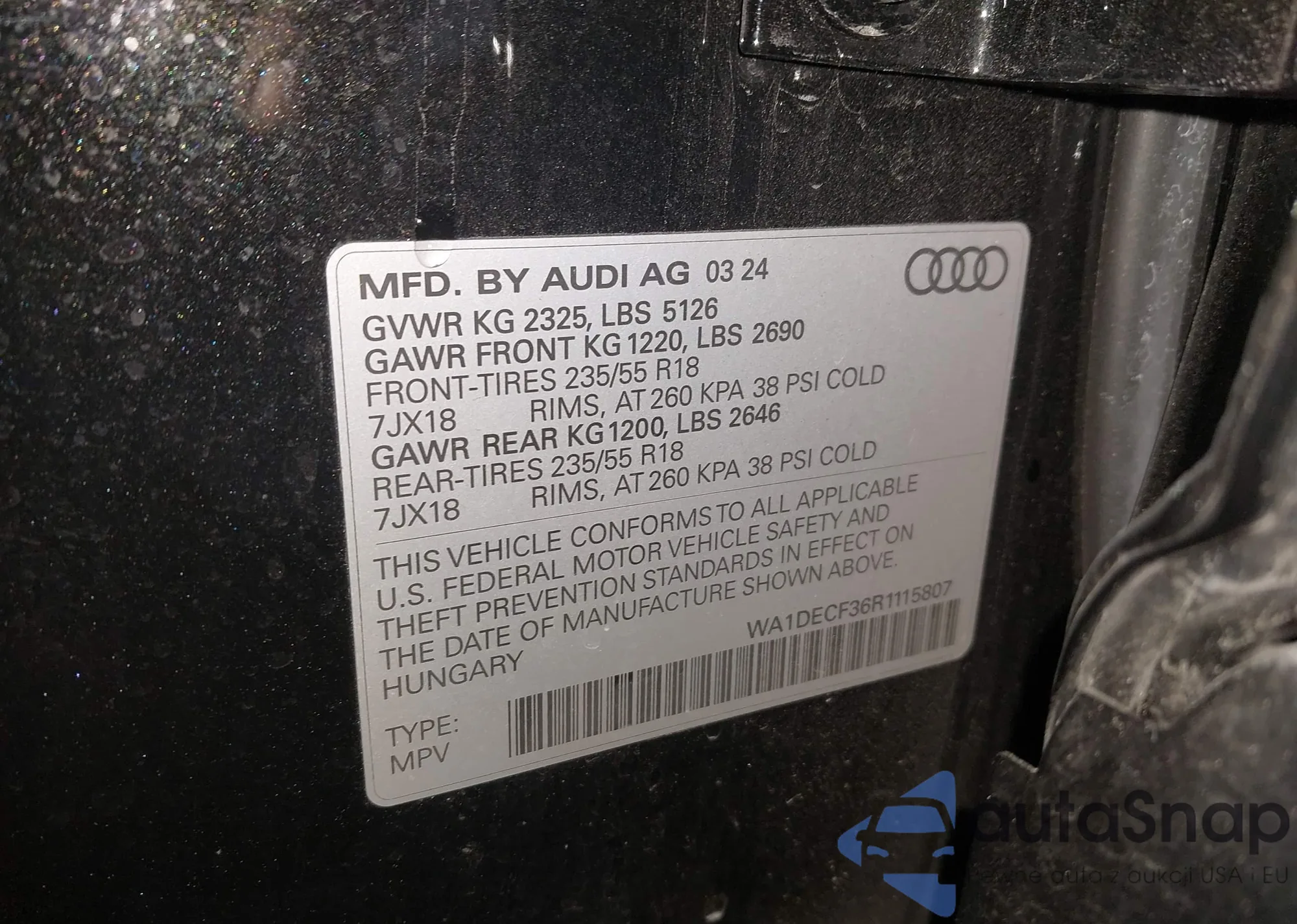 • VIN WA1DECF36R1115807
