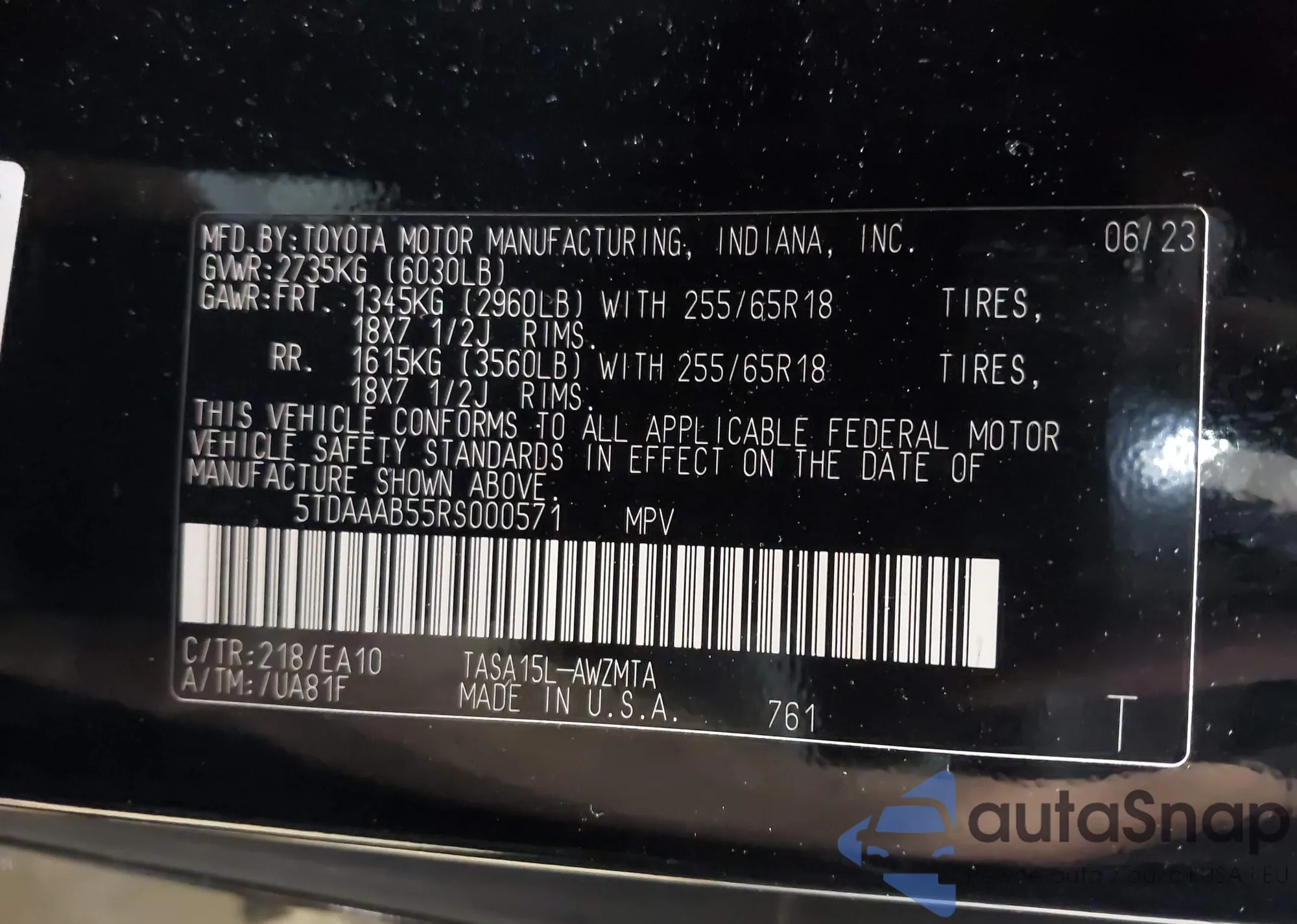 • VIN 5TDAAAB55RS000571