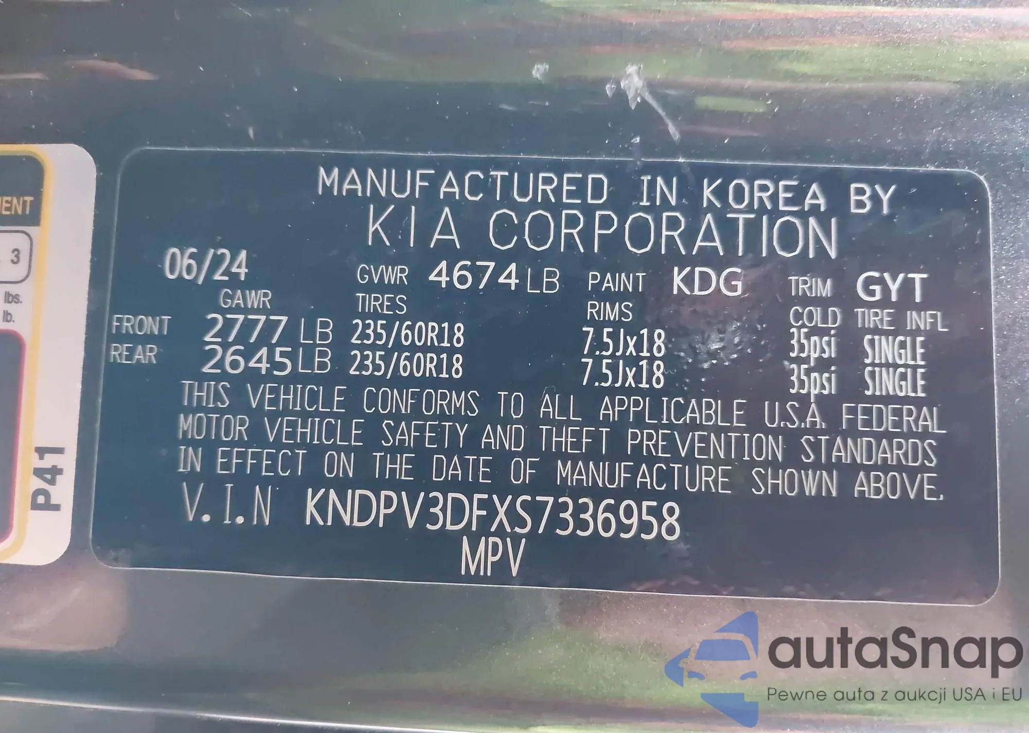 • VIN KNDPV3DFXS7336958